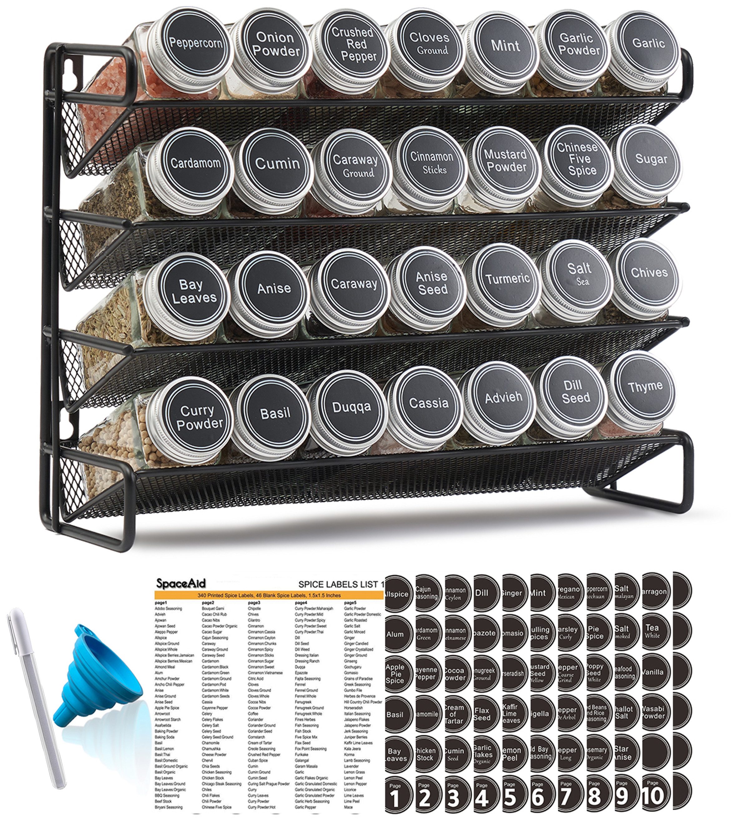 Lieferumfang | 1 x 4-stöckiges Gewürzregal, 28 x quadratische leere Gewürzgläser aus Glas, 1 x zusammenklappbarer Silikontrichter, 1 x Kreidemarker, 386 x Gewürzetiketten |