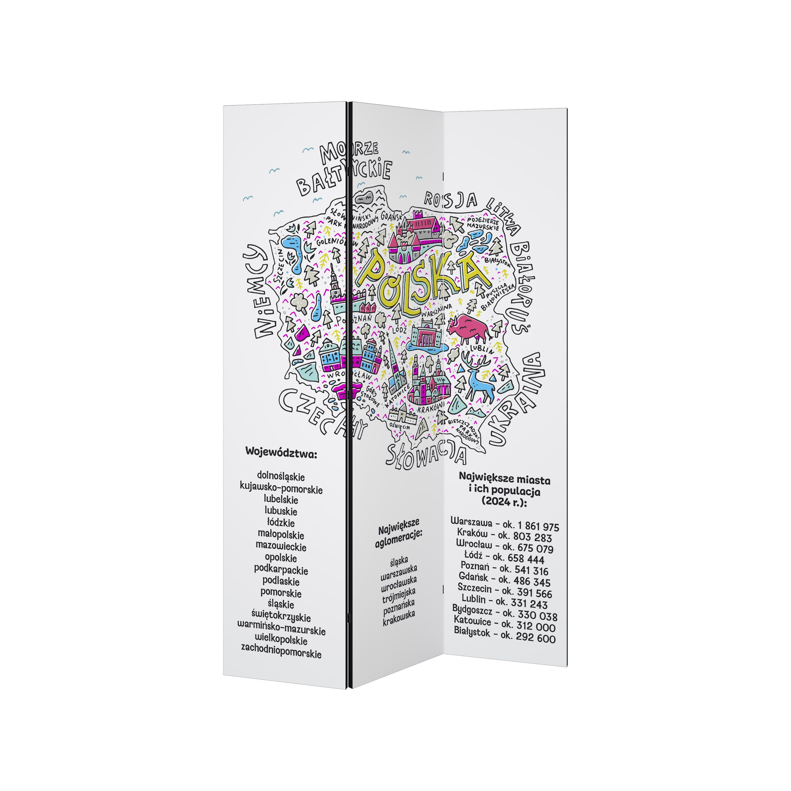 Jedes Flügelteil besteht aus einer leichten und zugleich robusten Platte mit einer eleganten Oberfläche in tiefmattem Schwarz - modern und einzigartig. Die Oberfläche des Paravents ist mit einem hochwertigen Druck versehen - einseitig oder beidseitig, ganz nach Ihren Vorlieben. Dank modernster Drucktechnologie sind die Farben intensiv und die Details gestochen scharf, was dem Ganzen besondere Tiefe und Ästhetik verleiht.