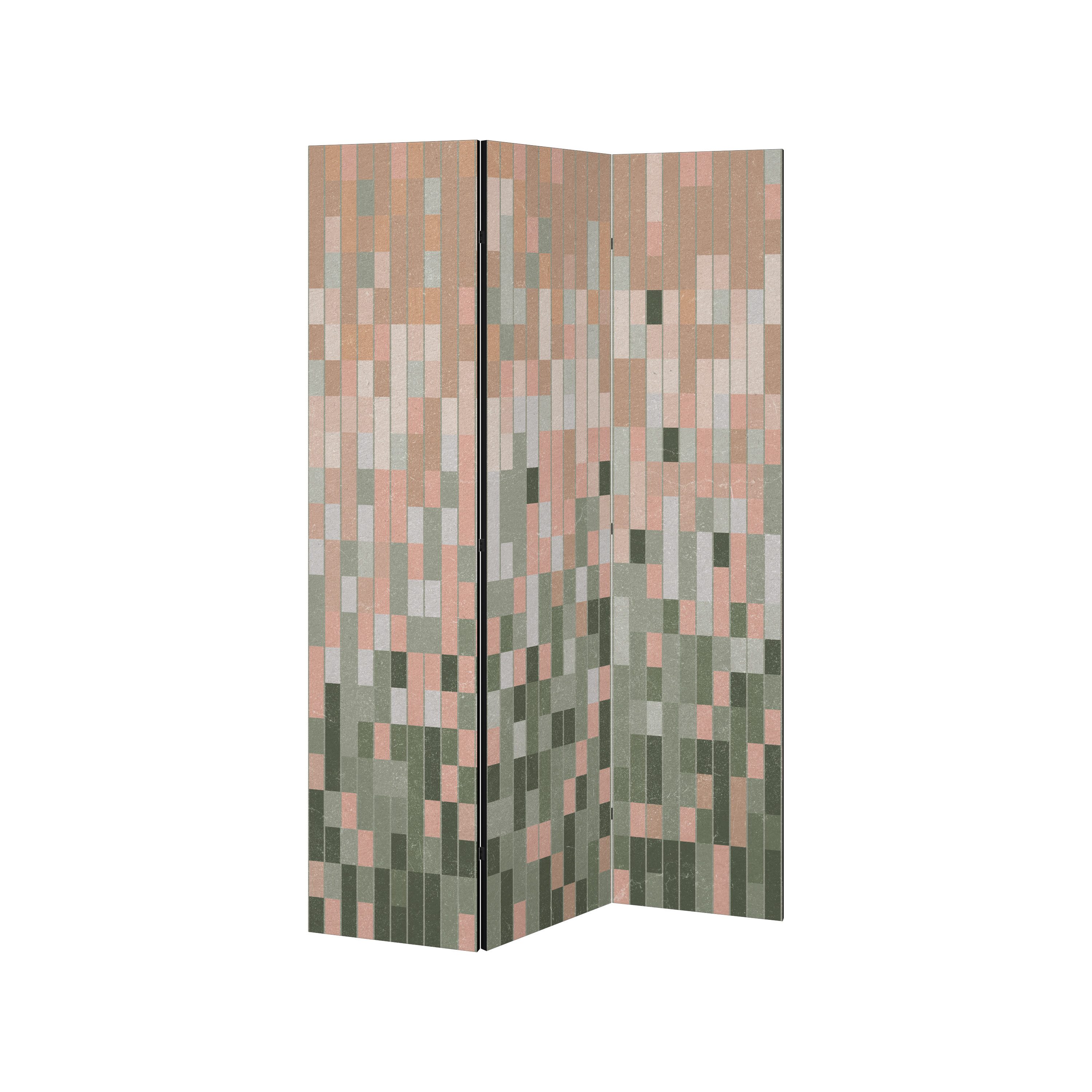 • 3-teilig, beidseitig: ca. 114×168 cm (B×H), 3 Paneele à 38×168 cm, beidseitig bedruckt. 1,45 cm Möbelplatte, matte Oberfläche, schwarze Kanten. Modernes Design.