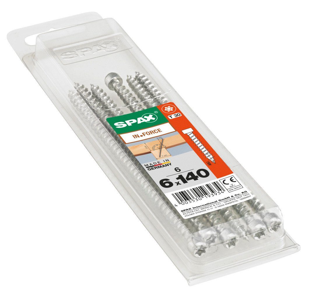 Produktdetails: Maße: 6.0 x 140 mm | Antrieb: TX 30 | Inhalt: 6 Stück | Kopfart: Zylinderkopf | Gewinde: Vollgewinde | Material: Stahl | Einsatz: Holzbau, Verstärkung von Holzquerschnitten und Holzanschlüssen | Art der Spitze: 4CUT (kein Vorbohren nötig) | Schnelles und sicheres Verarbeiten mit geringem Kraftaufwand (mehr Verschraubungen mit einer Akku-Ladung) |