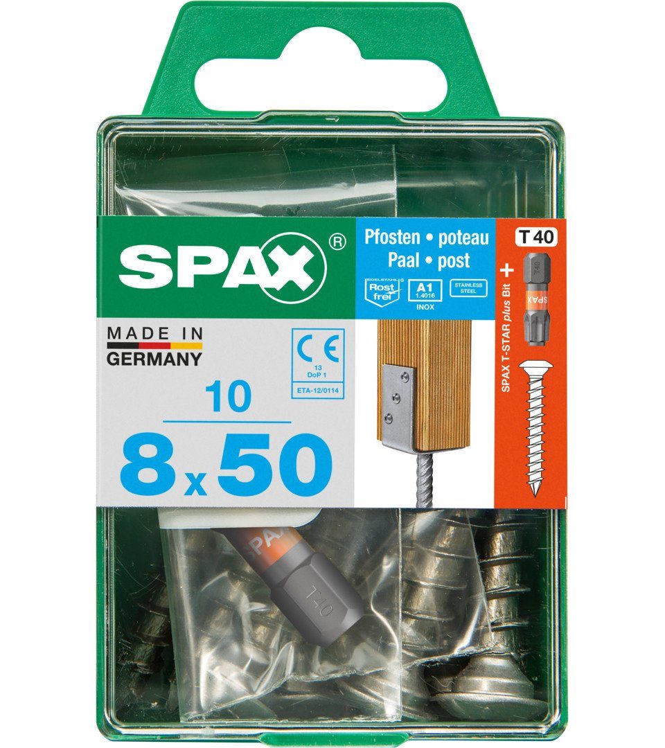 Produktdetails: Maße: 8.0 x 50 mm | Antrieb: TX 40 | Inhalt: 10 Stück | Kopfart: Zentrierkopf | Gewinde: Vollgewinde | Material: Edelstahl Rostfrei A2 | Einsatz: Terrassenbau | Art der Spitze: 4CUT (kein Vorbohren nötig) | Die Pfostenschraube, passend für viele Arten von Zaunpfosten |