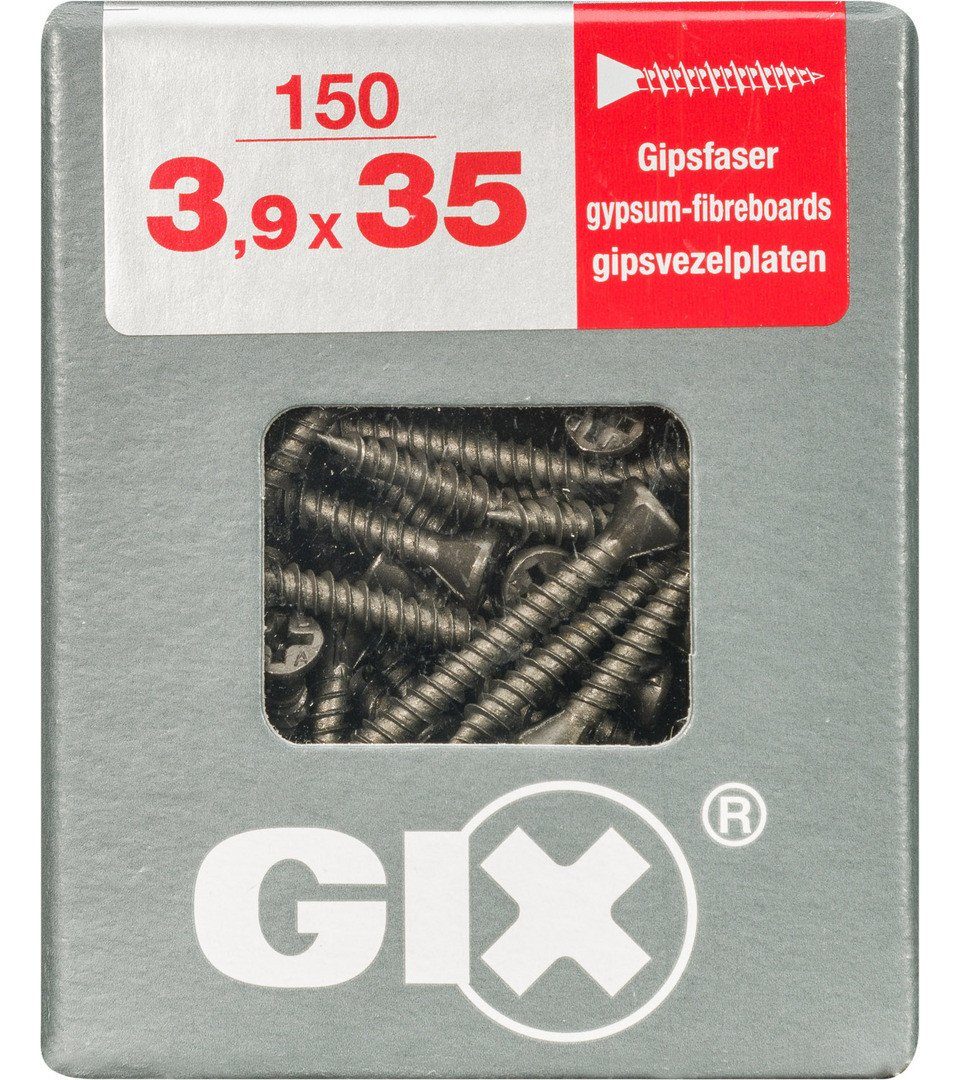Maße: 3.9 x 35 mm | Antrieb: PH 2 | Inhalt: 150 Stück | Kopfart: Spitzer Fräskopf | Gewinde: Vollgewinde | Material: Stahl | Einsatz: Zur Befestigung von Gipsfaserplatten auf Metall- oder Holzkonstruktion | Art der Spitze: Nadelspitze | Für die Verschraubung von Trockenestrich-Elementen |