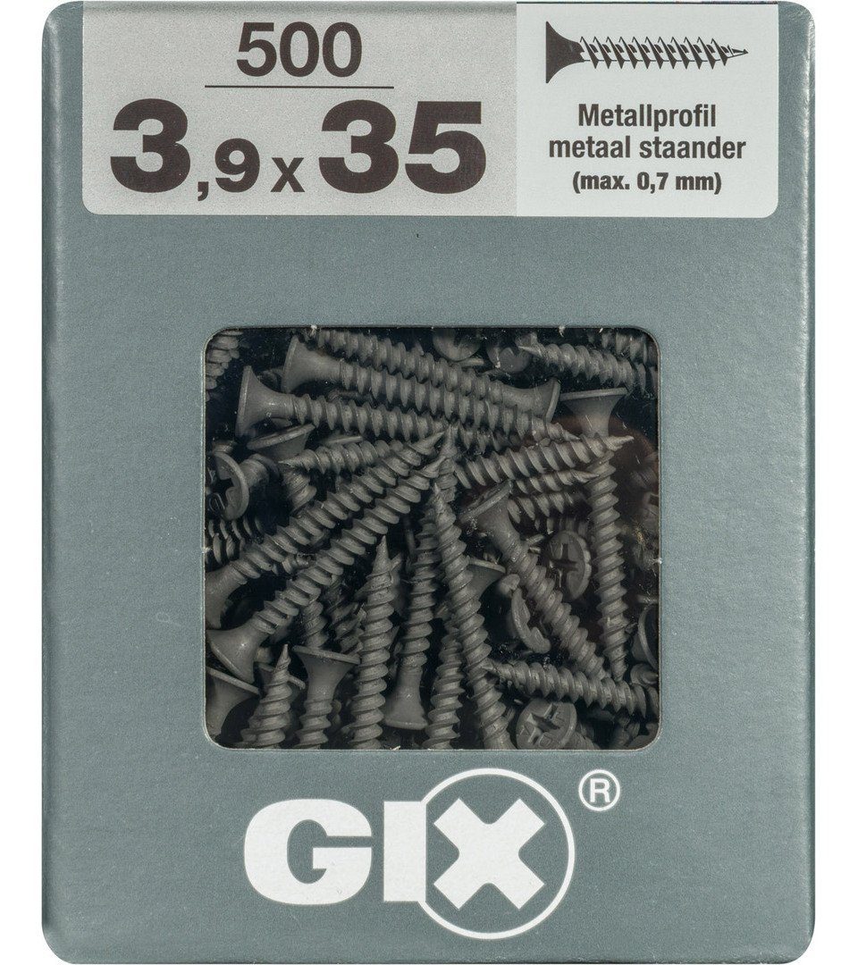 Maße: 3.9 x 35 mm | Antrieb: PH 2 | Inhalt: 500 Stück | Kopfart: Trompetenkopf | Gewinde: Vollgewinde | Material: Stahl | Einsatz: Zur Befestigung von Gipskarton auf Metallständerwerk | Art der Spitze: Nadelspitze | Geeignet für Metallprofile bis 0,7 mm Stärke |
