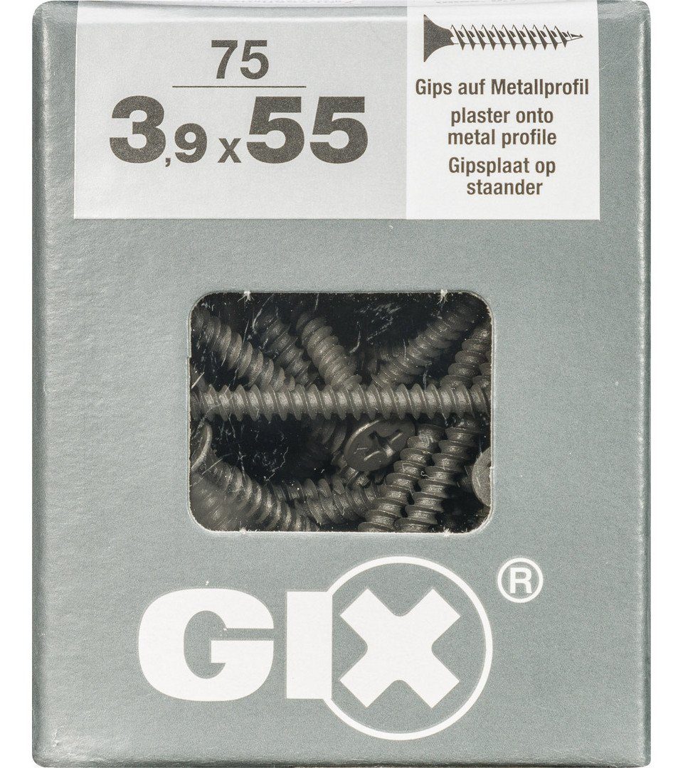 Maße: 3.9 x 55 mm | Antrieb: PH 2 | Inhalt: 75 Stück | Kopfart: Trompetenkopf | Gewinde: Vollgewinde | Material: Stahl | Einsatz: Zur Befestigung von Gipskarton auf Metallständerwerk | Art der Spitze: Nadelspitze | Geeignet für Metallprofile bis 0,7 mm Stärke |