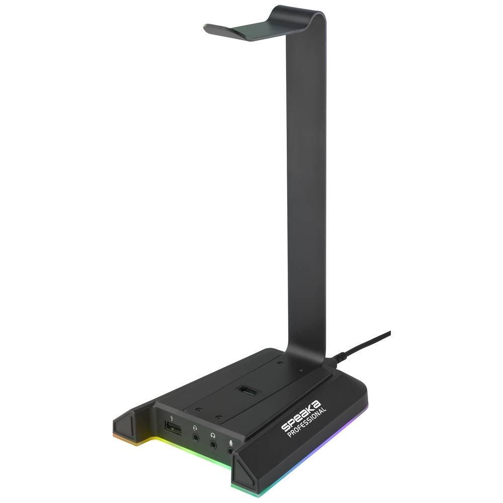 SPEAKA Professional SP-HPS-320 RGB Kopfhörerständer mit 3x 3,5 mm Anschlüssen und 2 USB-Anschlüssen.