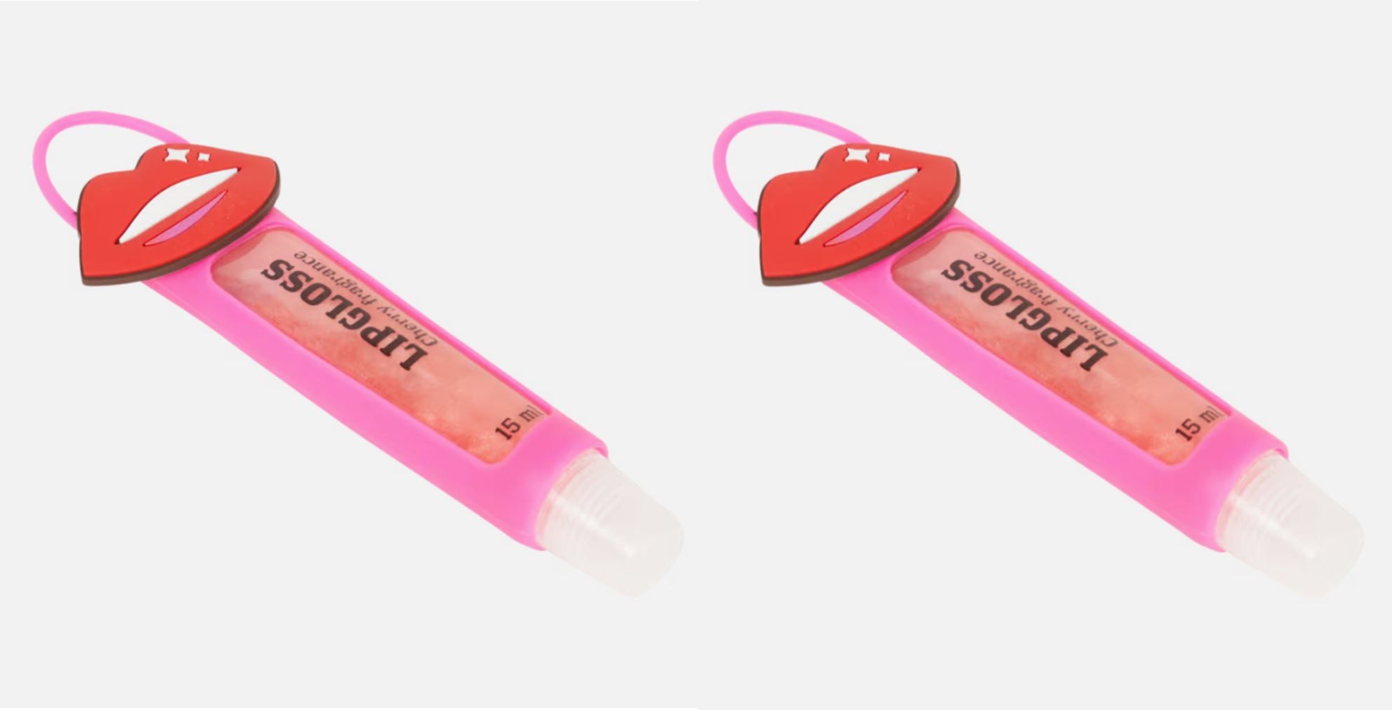 2 Stück Lipgloss in Silikonhalter je 15 ml • Mit Kirschgeschmack • Sanft zu den Lippen • In Silikonhalter Dieser Lipgloss mit Kirschgeschmack pflegt deine Lippen und lässt sie schön glänzen.