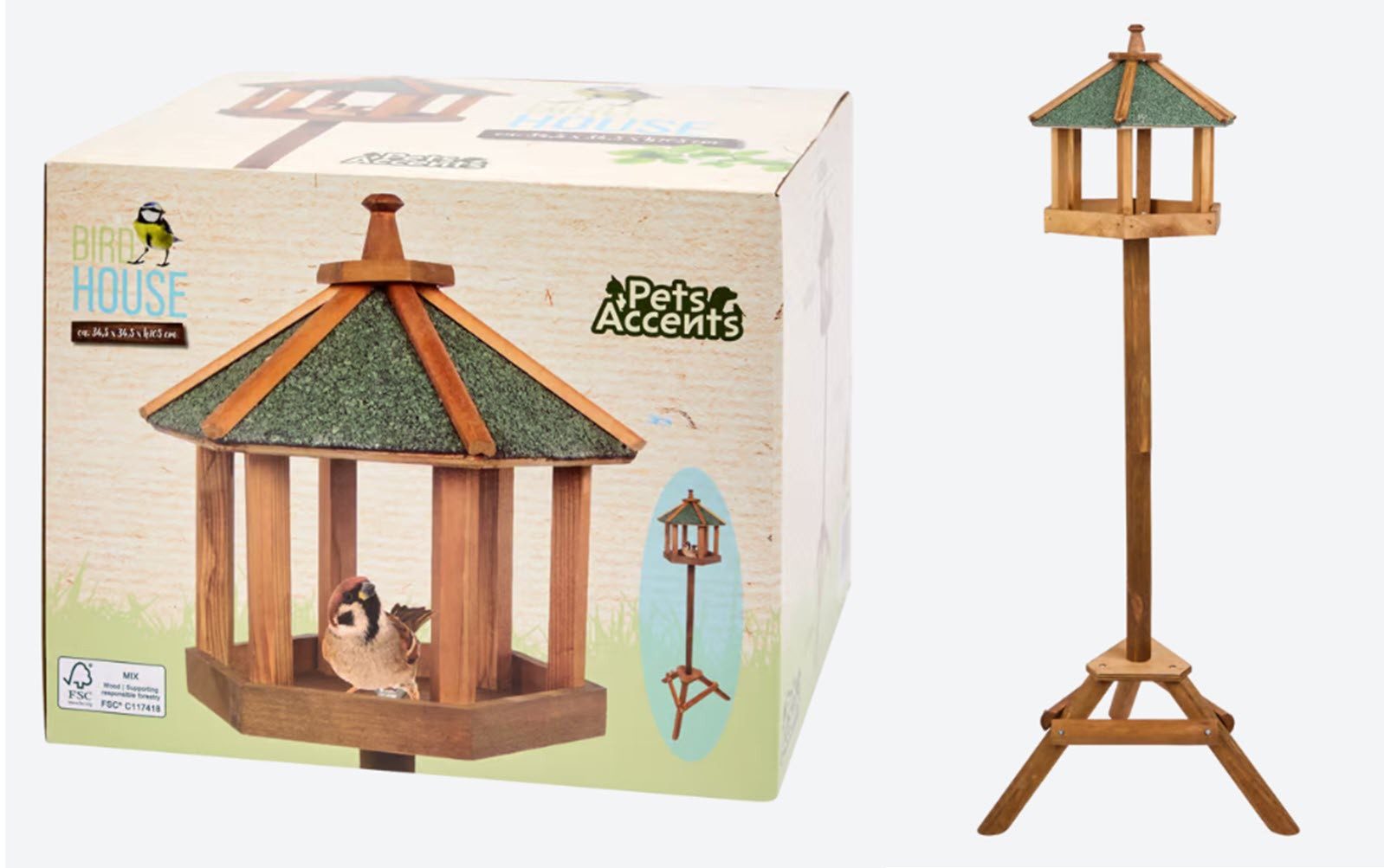 Vogelfutterhaus mit Ständer Das Dach des Vogel Futterhaus hat eine spezielle Dachbeschichtung. Es bietet den frei lebenden Vögeln umfangreiche Landemöglichkeiten auch auf dem Dach. Der schützende Dachüberstand hält das Futter trocken. mit großflächigem Dachüberstand mit großer Landefläche hält das Futter trocken und sauber mühelos zu befüllen Abmessungen: ca. 35× 35× 36 cm/1,05 m • Sicherer Futterplatz für Vögel • Für alle Jahreszeiten geeignet • Mit FSC-Kennzeichnung für Holz und Papier aus verantwortungsvollen Quellen Mit diesem stehenden Vogelhaus haben Vögel einen ruhigen Ort zum Fressen.