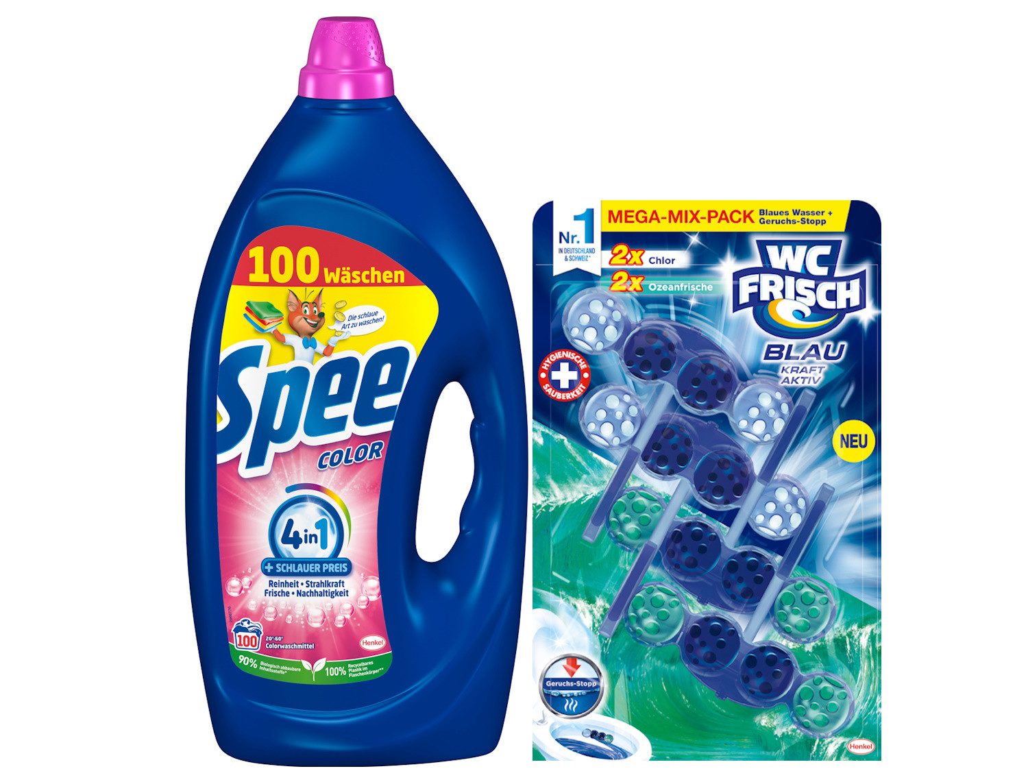 Lieferumfang | 1 x Spee Color Gel 100 WL + 1 x WC Frisch Blauspüler (4er Pack) |