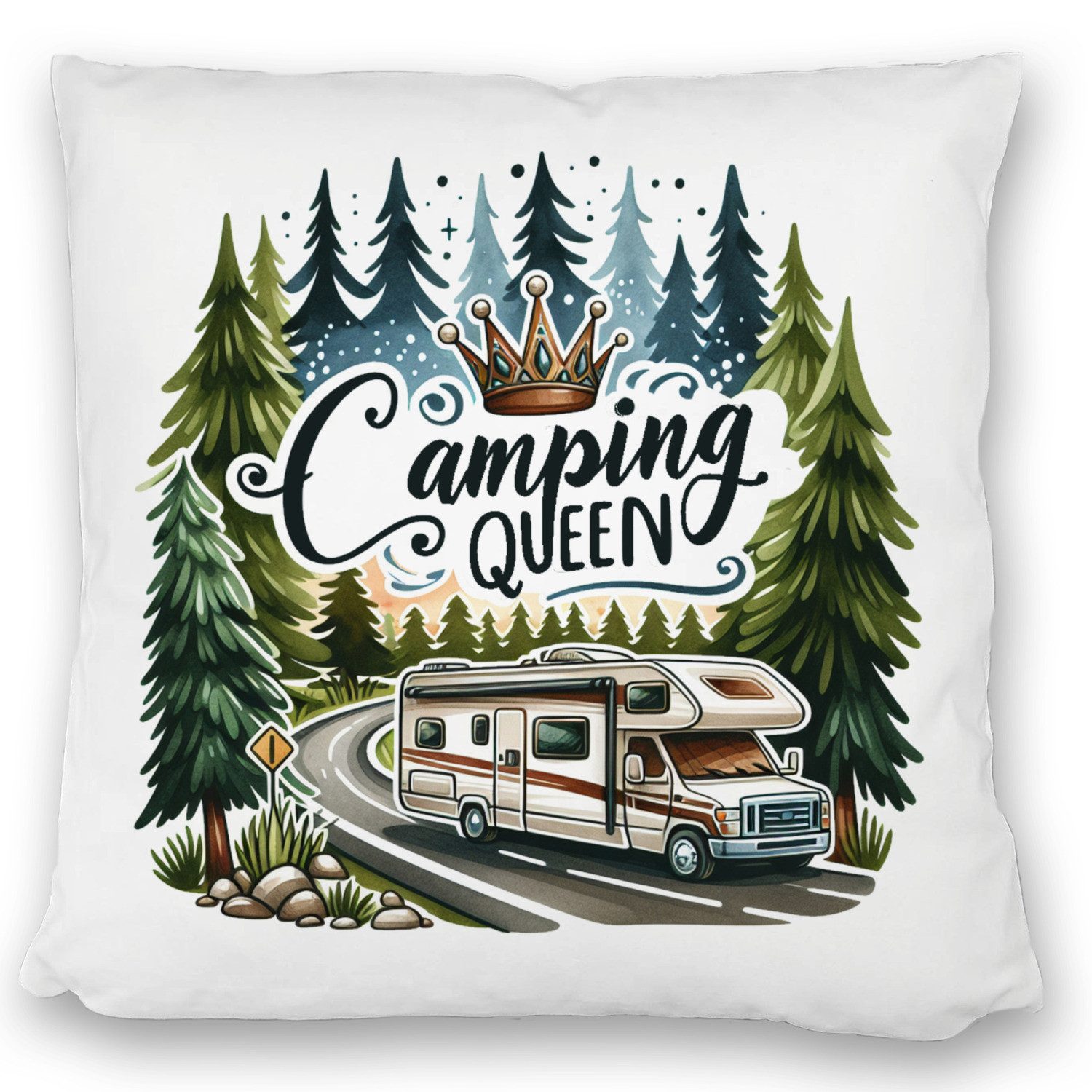 Träume groß, campiere königlich! Unser Wohnmobil Camping Queen Kissen bringt das Abenteuer direkt ins Wohnzimmer. Mit einem charmanten Wohnmobil, das durch einen dichten Wald fährt, und dem coolen Spruch 'Camping Queen' – der perfekte Begleiter für alle Natur- und Landschaftsliebhaber!