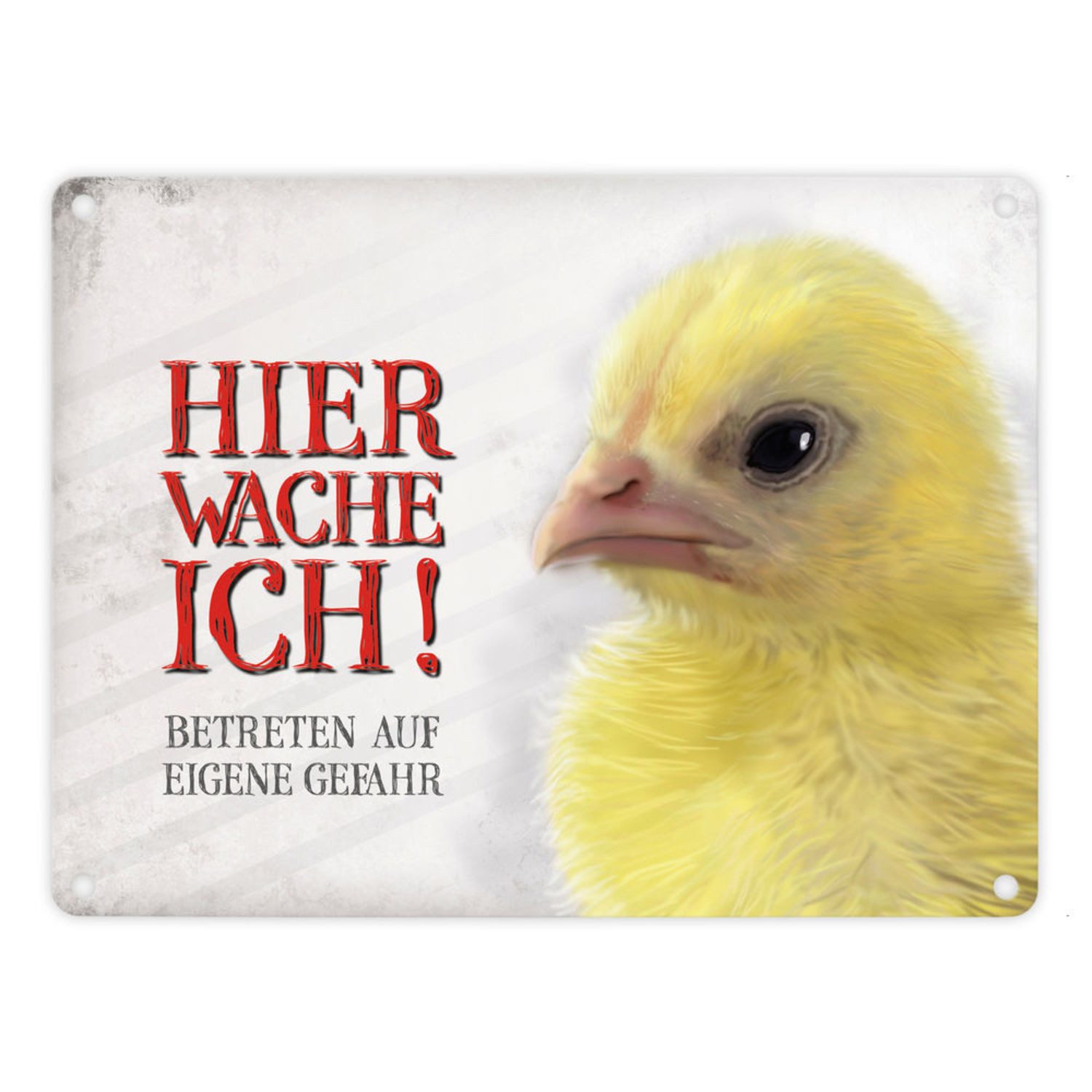 speecheese Metallschild Metallschild mit Küken Motiv und Spruch: Betreten auf eigene Gefahr