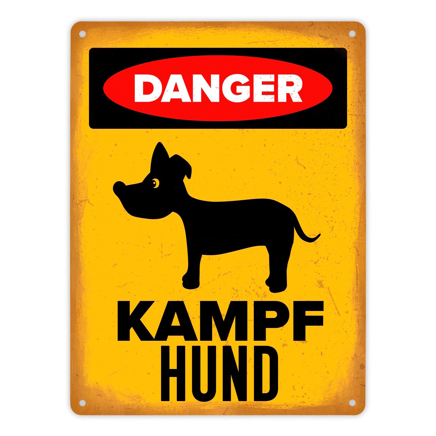 speecheese Metallschild Danger Kampf Hund Metallschild XL in 21x28 cm mit Hunde Silhouette