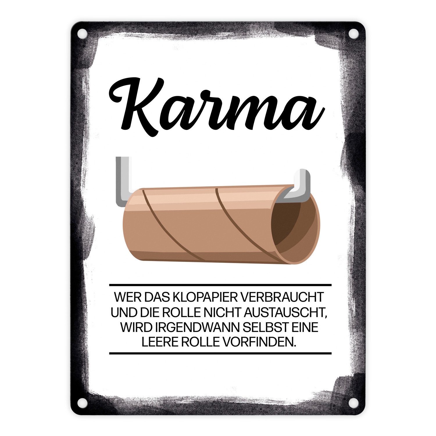 speecheese Metallschild Karma für aufgebrauchtes Klopapier Metallschild in 15x20 cm