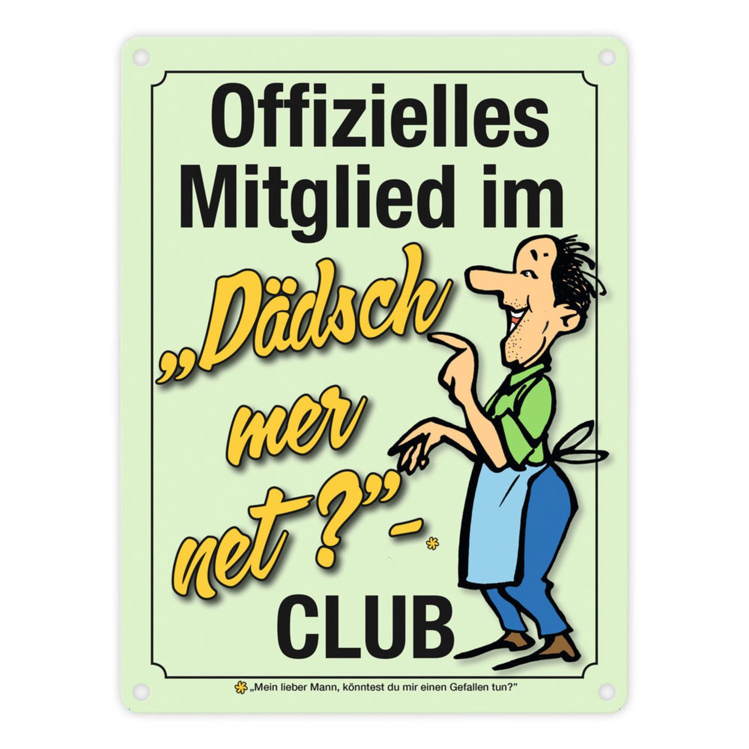 • Auf dem Dekoschild ist ein Mann abgebildet, der sagt: Dätsch mer net? Beschriftung: Offizielles Mitglied im Club. *Mein Lieber Mann, könntest du mir einen Gefallen tun?