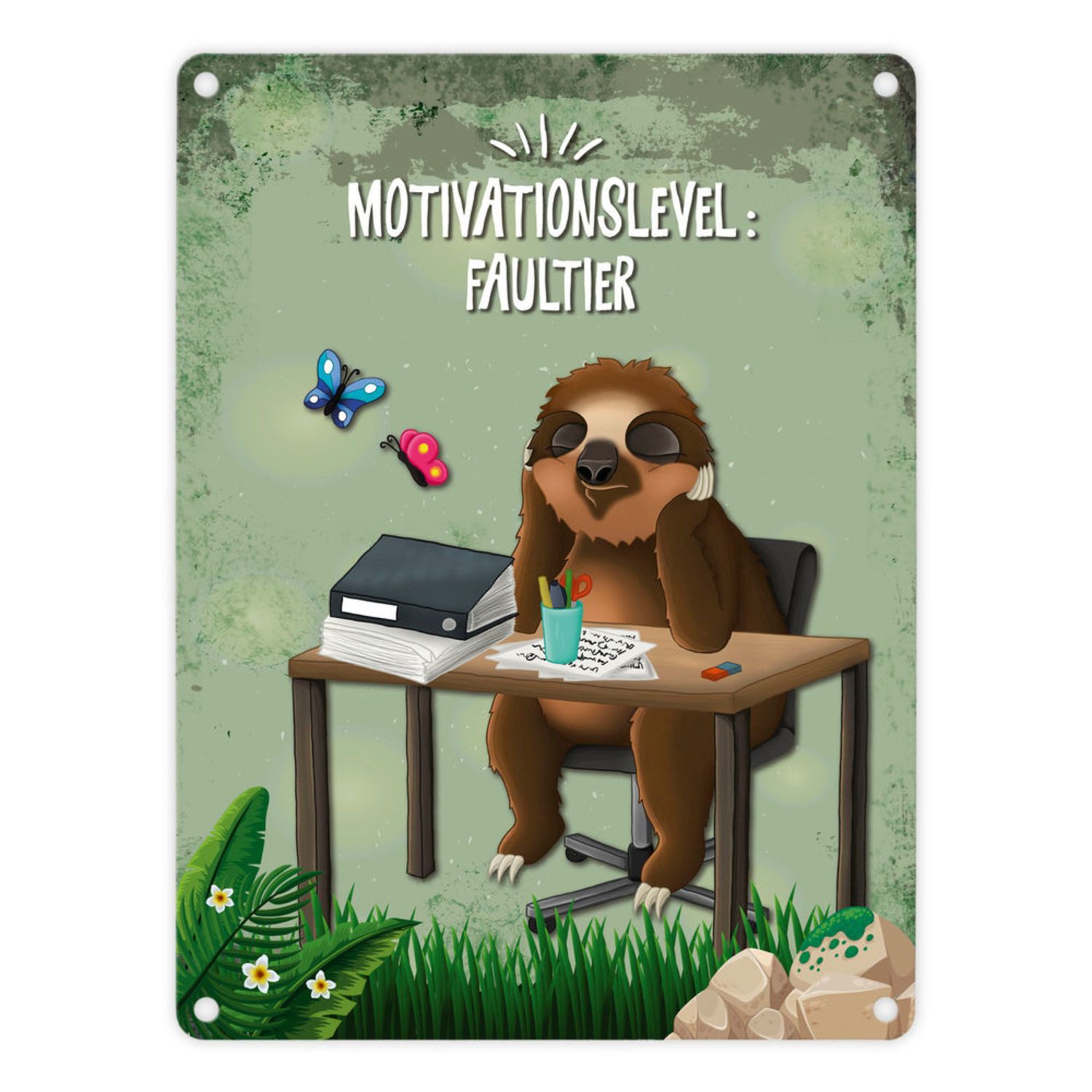 speecheese Metallschild Metallschild mit Faultier Motiv und Spruch: Motivationslevel: Schild