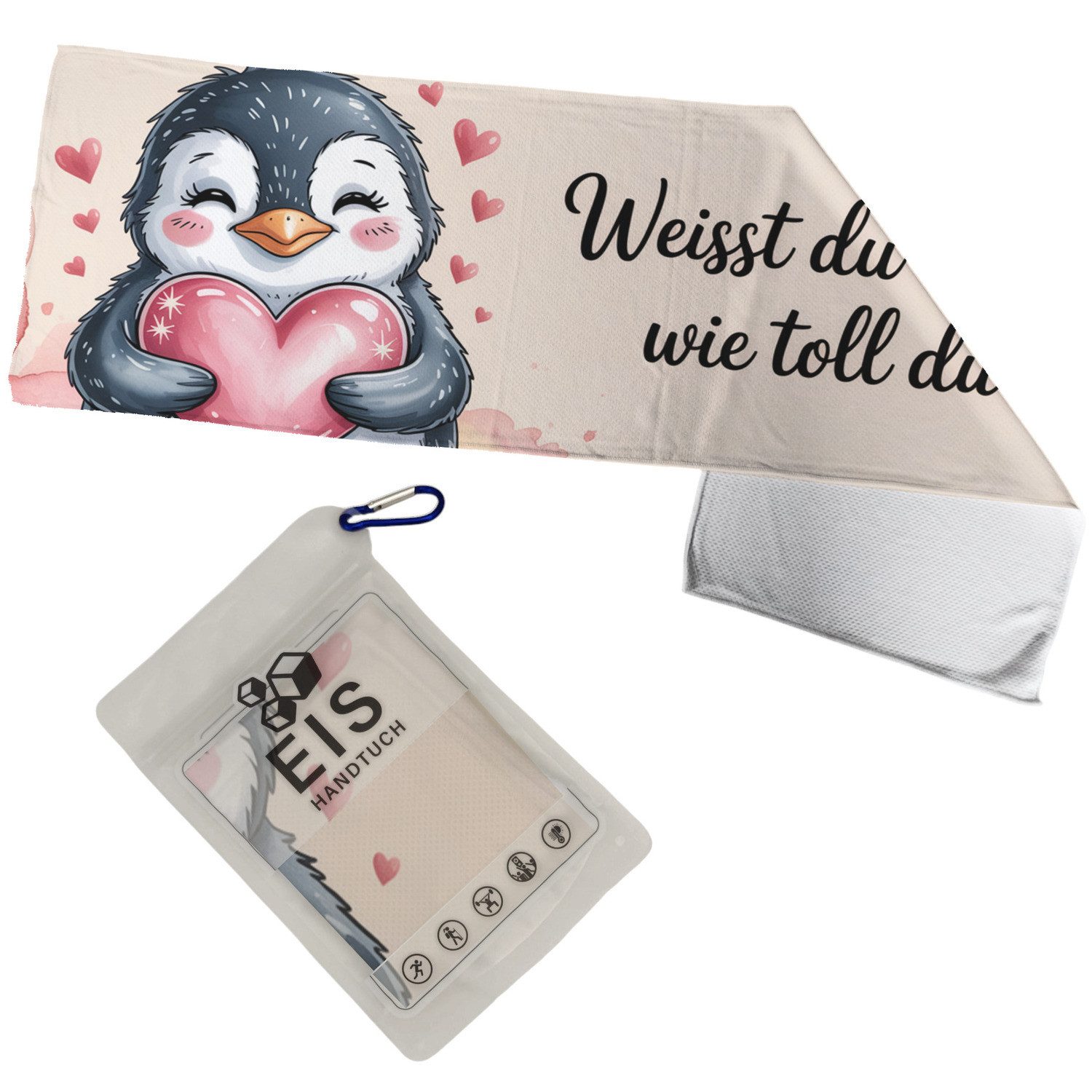 Lieferumfang: 1x Du bist toll Pinguin mit Herz Eishandtuch - Niedliches Motiv