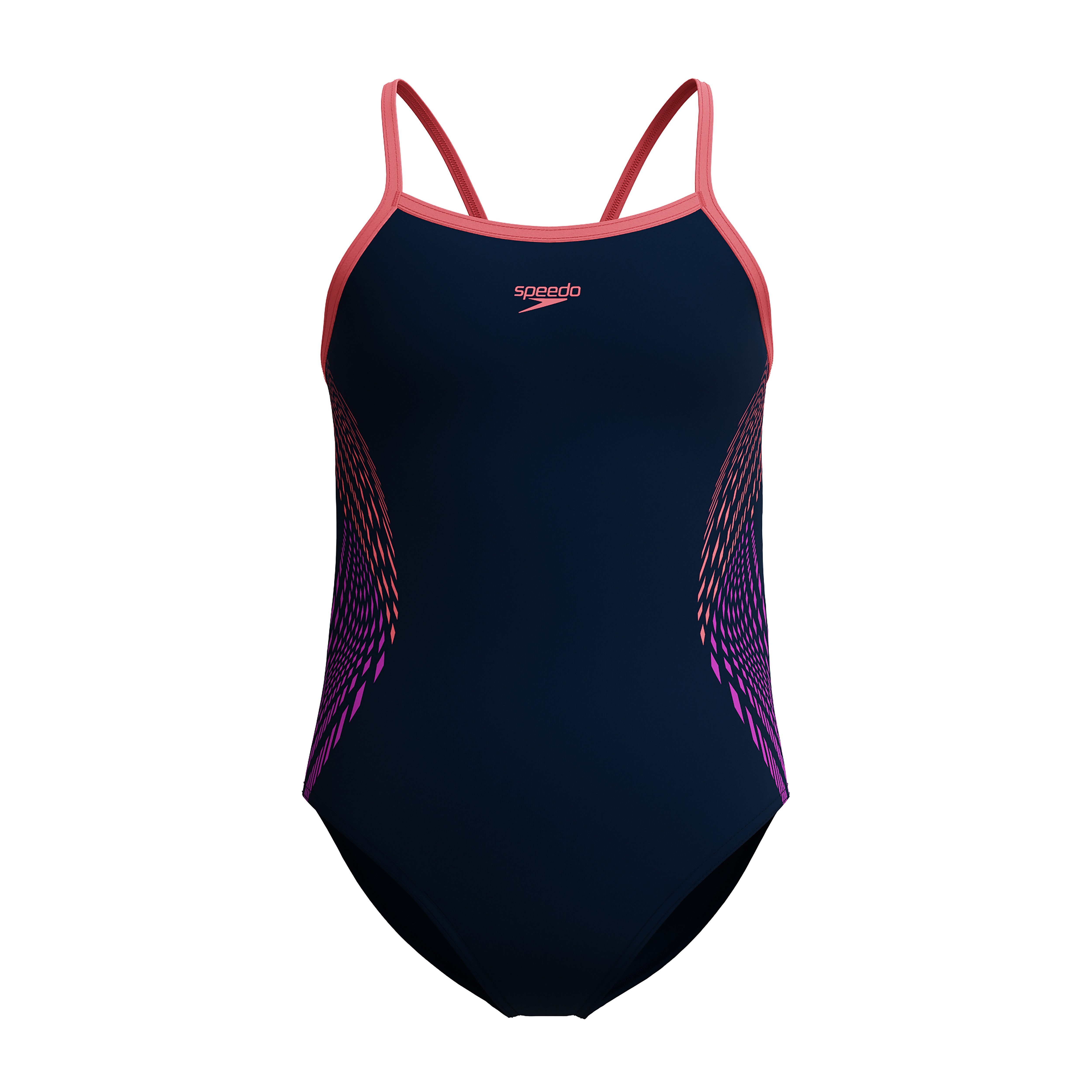 In unserem kobaltblauen Thinstrap Muscleback-Design wirst du dich wohlfühlen und schlank aussehen. Es präsentiert sich mit einer Drop-Ripple-Grafik im Plastisol-Print in leuchtenden Blau- und Rosatönen. Dieses Modell ist bei jungen Schwimmerinnen sehr beliebt. Die schmalen Träger bieten mehr Flexibilität beim Schwimmen, während das Muscleback-Design beim Schwimmunterricht und Training volle Bewegungsfreiheit bietet. Unser EnduraFlex Material ist ideal für regelmäßiges Schwimmen. Es bietet eine höhere Chlorbeständigkeit als herkömmliche Badebekleidung und sitzt dank CREORA® HighClo™ länger wie neu. Darüber hinaus werden Nylongarne im EnduraFlex-Gewebe zu 100 % aus Abfällen hergestellt, wie zum Beispiel aus Abfälle aus Fabriken. * Muscleback-Schnitt – bietet Flexibilität und Bewegungsfreiheit für besten Tragekomfort beim Schwimmen * Bessere Chlorbeständigkeit als herkömmliche Bademodestoffe – mit CREORA® HighClo™, das länger die perfekte Passform behält * Formstabilität – aus Stretch-Material für uneingeschränkte Bewegungsfreiheit * Darüber hinaus werden Nylongarne im EnduraFlex-Gewebe zu 10 % aus Abfällen hergestellt, wie zum Beispiel aus Fabrikabfällen