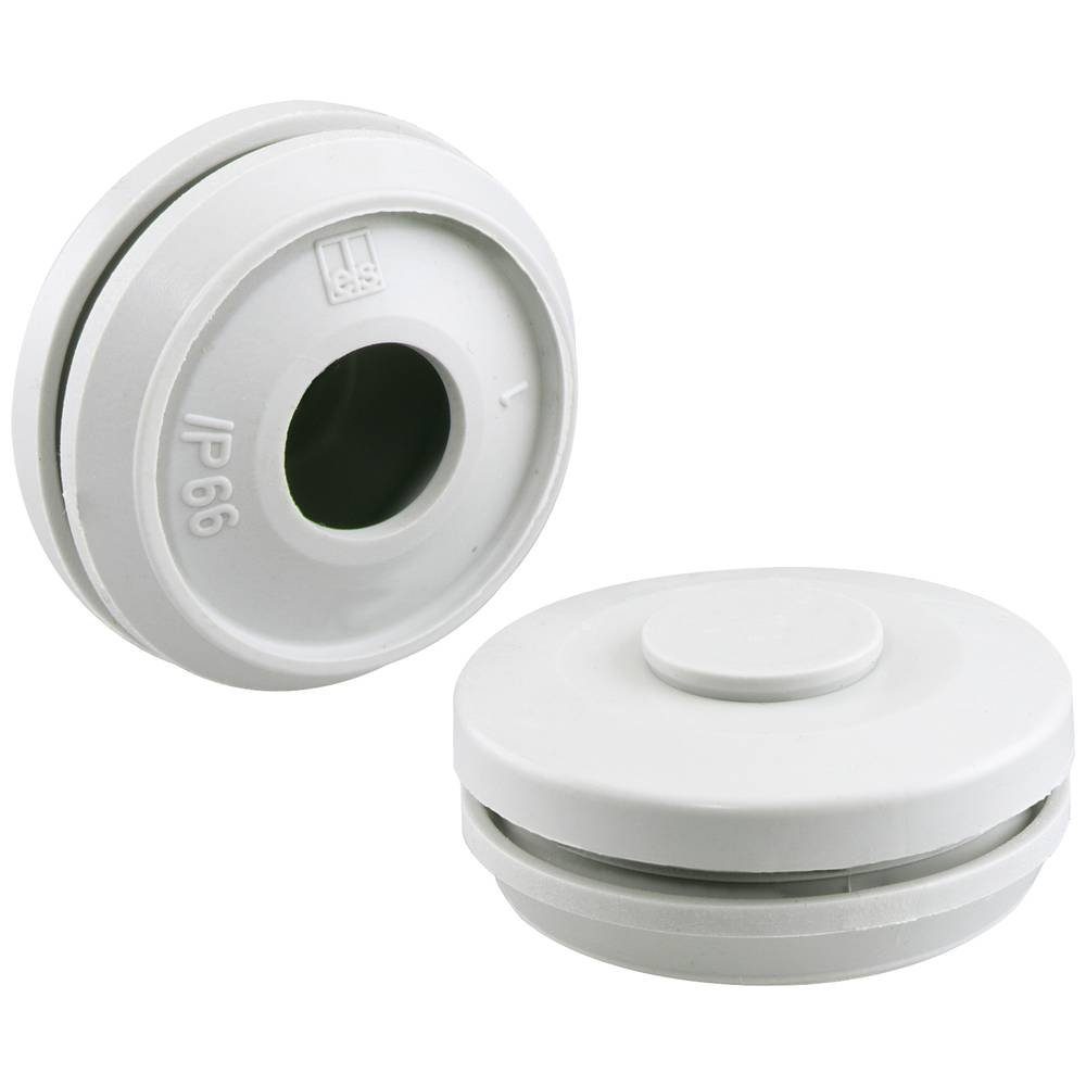 Normen | Ausführung (allgemein): Ø 25 mm, geschlossen · Halogenfrei: Ja · Herstellerfarbe: Lichtgrau · Klemm-Ø (max.): 16 mm · Klemm-Ø (min.): 9 mm · Schutzart: IP66 · Впередe technische Daten: Für Wandstärke: 1.5 - 4 mm |
