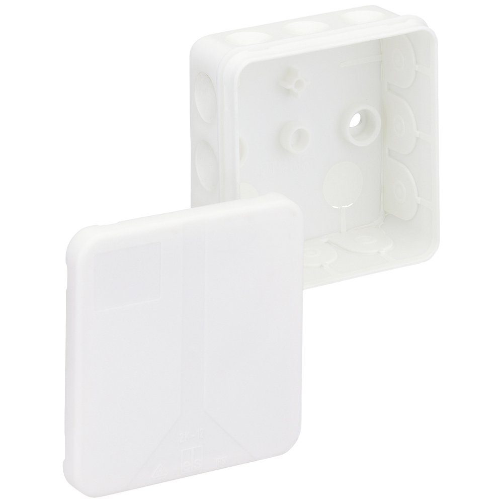 Verbindungsdose nach DIN EN 60670 (VDE 0606), 12 Einführungen, 2 Bodeneinführungen, mit selbstdichtenden, weichen Einführungsmembranen, Werkzeug zum Öffnen der Leitungseinführung nicht erforderlich, Dichtbereich 2 - 14 mm, mit innenliegenden Befestigungsstellen, mit Schutzart IP55, bis 2,5², mit Schutzgrad IK07, Schutzklasse II, VDE geprüft, Halogenfrei, ohne Klemmen, für VDE-zugel. Einzelklemmen
