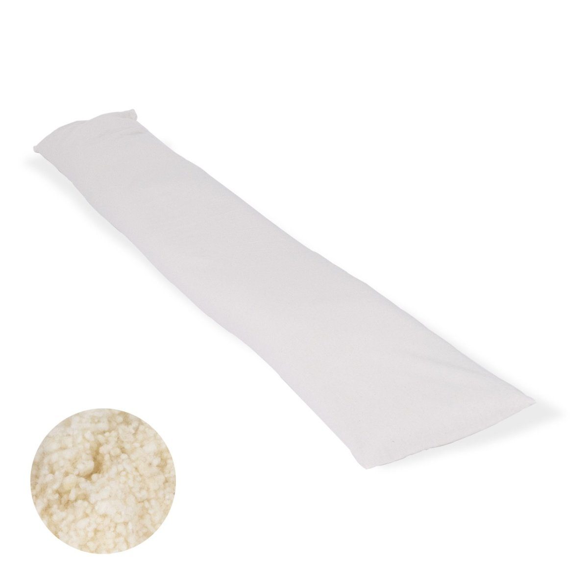 Die Füllung besteht zu 100% aus Schafwolle aus kontrolliert biologischer Tierhaltung. Schafwolle verfügt über eine hohe Spannkraft. Durch die besondere Elastizität werden die empfindlichen Partien der Halswirbelsäule sanft gestützt – ganz ohne Druck. Wolle ist atmungsaktiv und kann viel Feuchtigkeit aufnehmen, ohne Klamm zu werden. Die spezielle Faseroberfläche der Wolle nimmt kaum Schmutz auf, sodass sie besonders hygienisch ist.