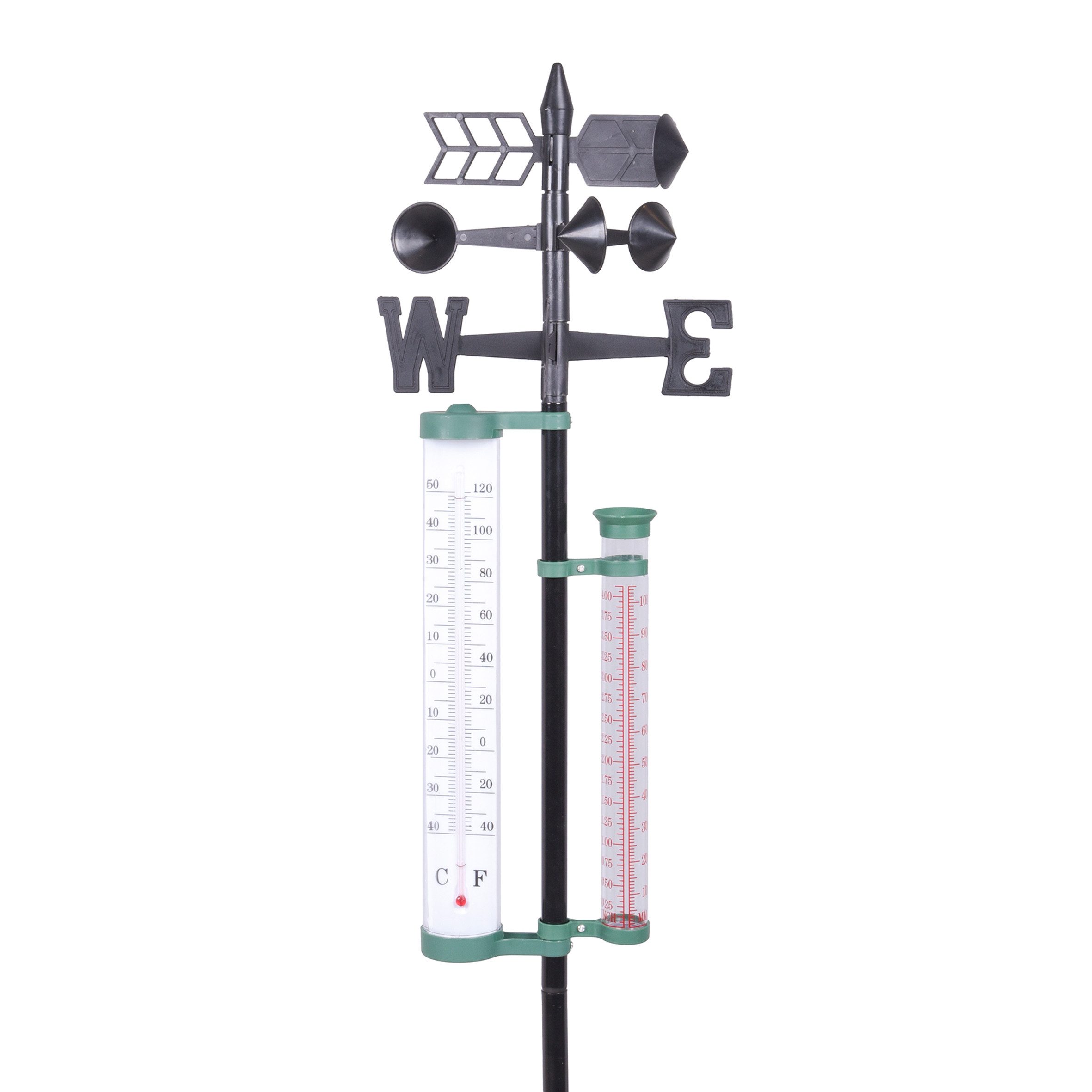 4in1 Wetterstation mit Erdspieß - 146 x 24 cm - Garten Thermometer Wind- und Niederschlagsmesser