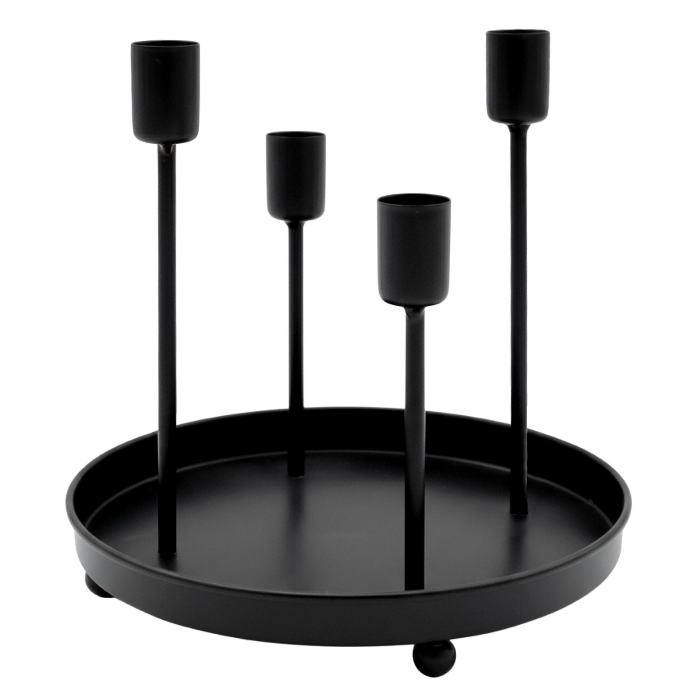 Metall Kerzenständer schwarz rund für 4 Stabkerzen - 20 cm - Kerzentablett mit 4 unterschiedlich hohen Haltern für 4 Tafelkerzen