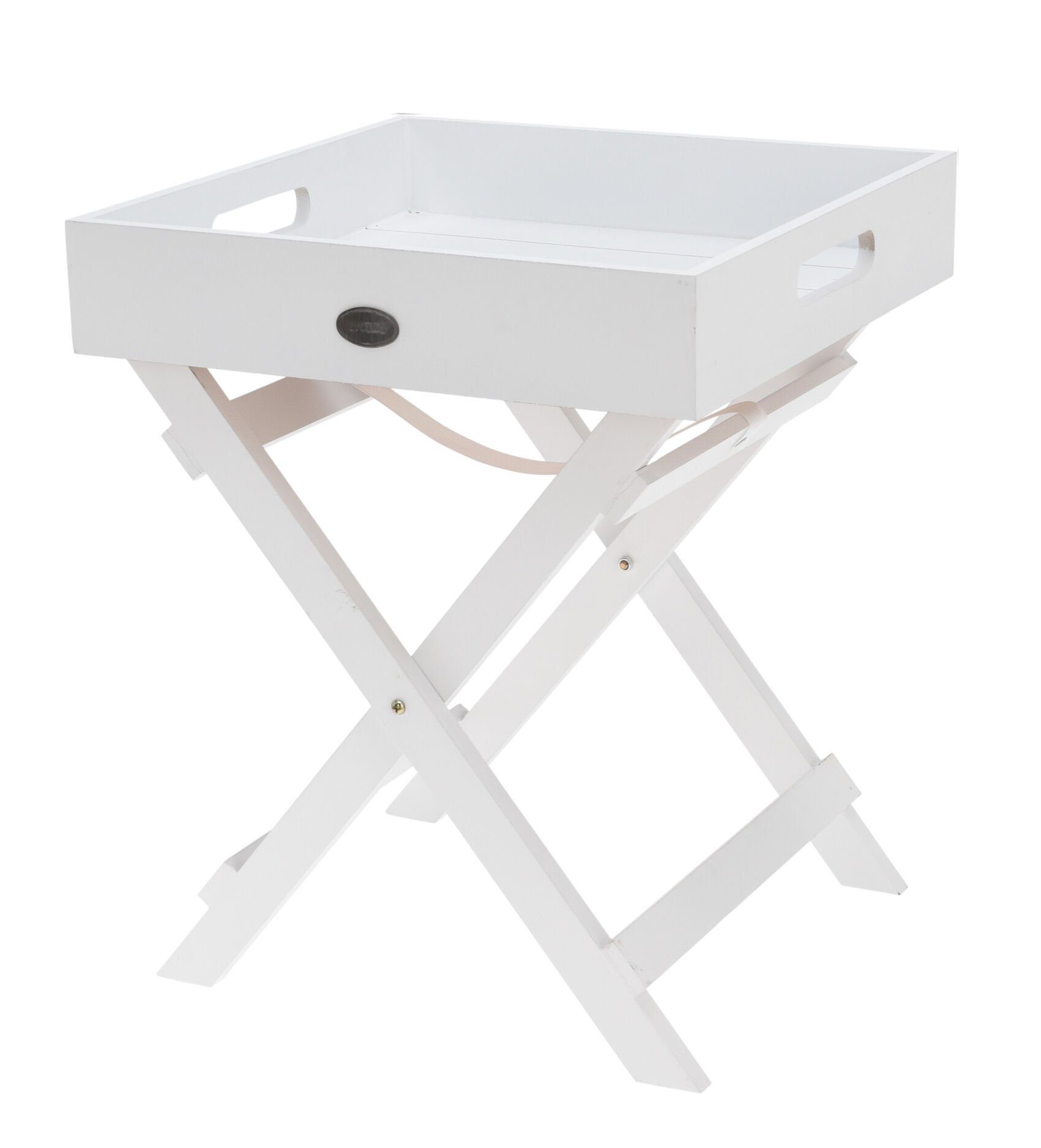 Holz Beistelltisch weiß mit abnehmbaren Tablett - 36 x 30 cm - klappbarer Deko Tisch 2-teilig
