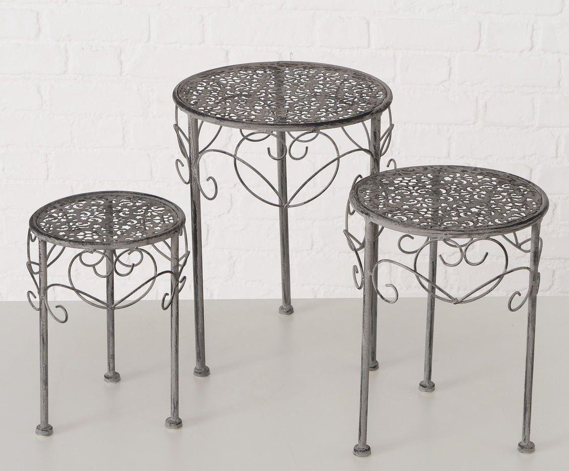 Vintage Pflanztisch ORANIA 3er Set - grau - Blumenhocker 40 / 34 / 27 cm mit Ornamenten