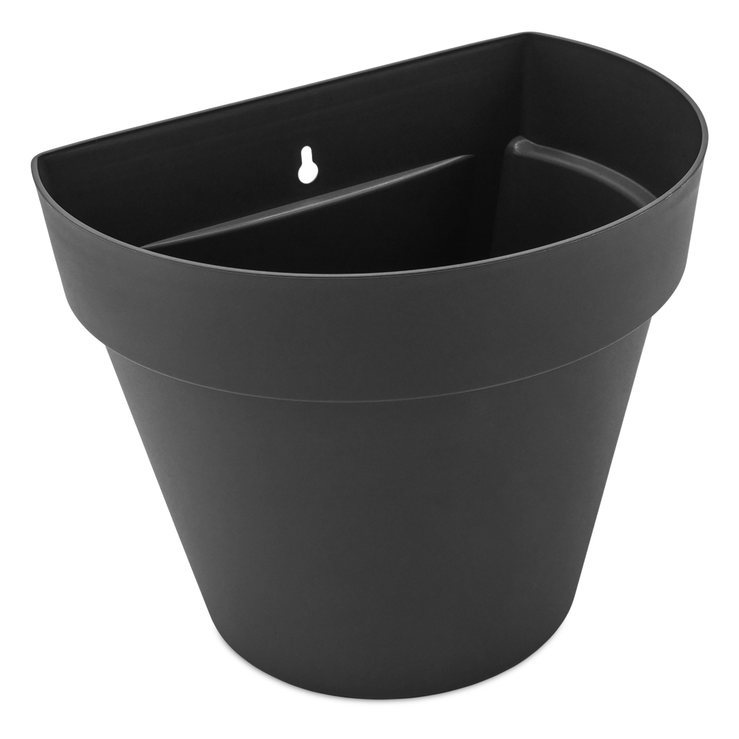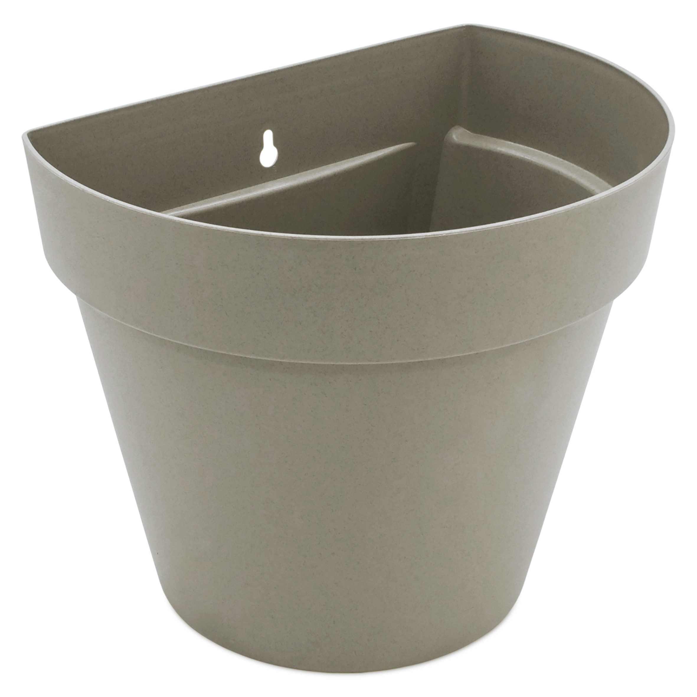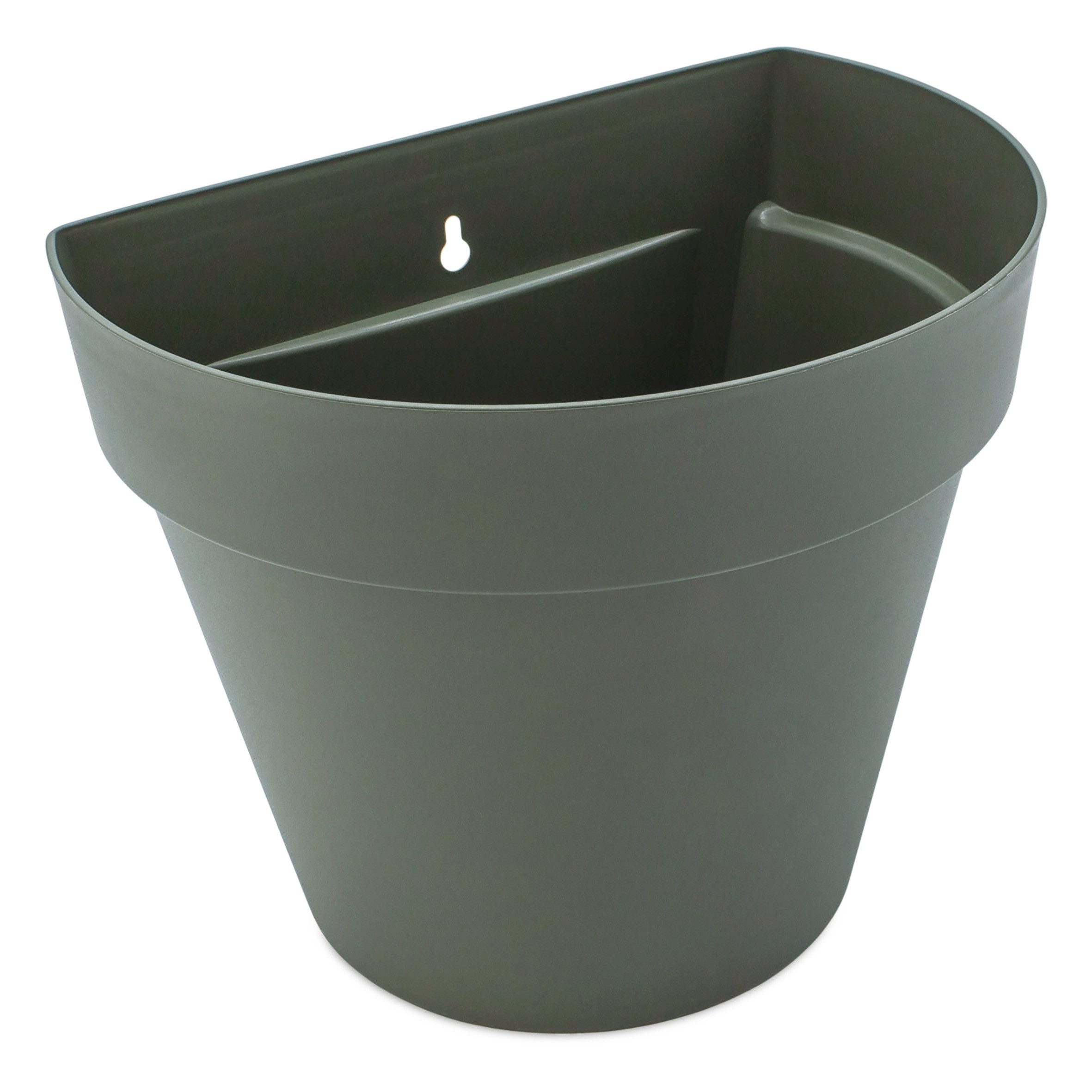 Wetterfester Hänge-Pflanztopf halb rund ca. 28 x 20 cm zur Wandbefestigung aus frostbeständigem Kunststoff in oliv grün