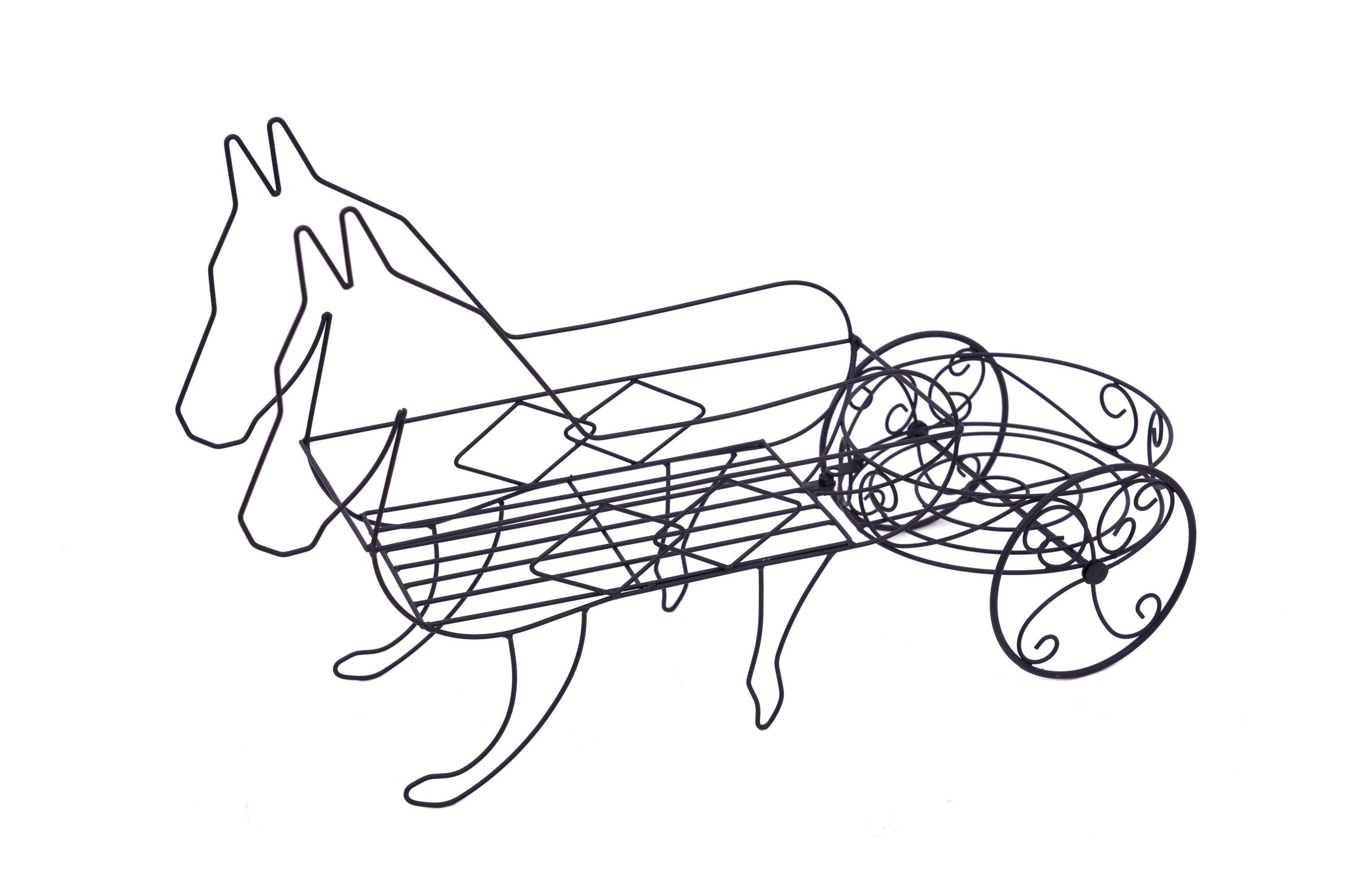 Dekorativer Pflanzenständer in Pferdekutschen Optik aus Metall in schwarz