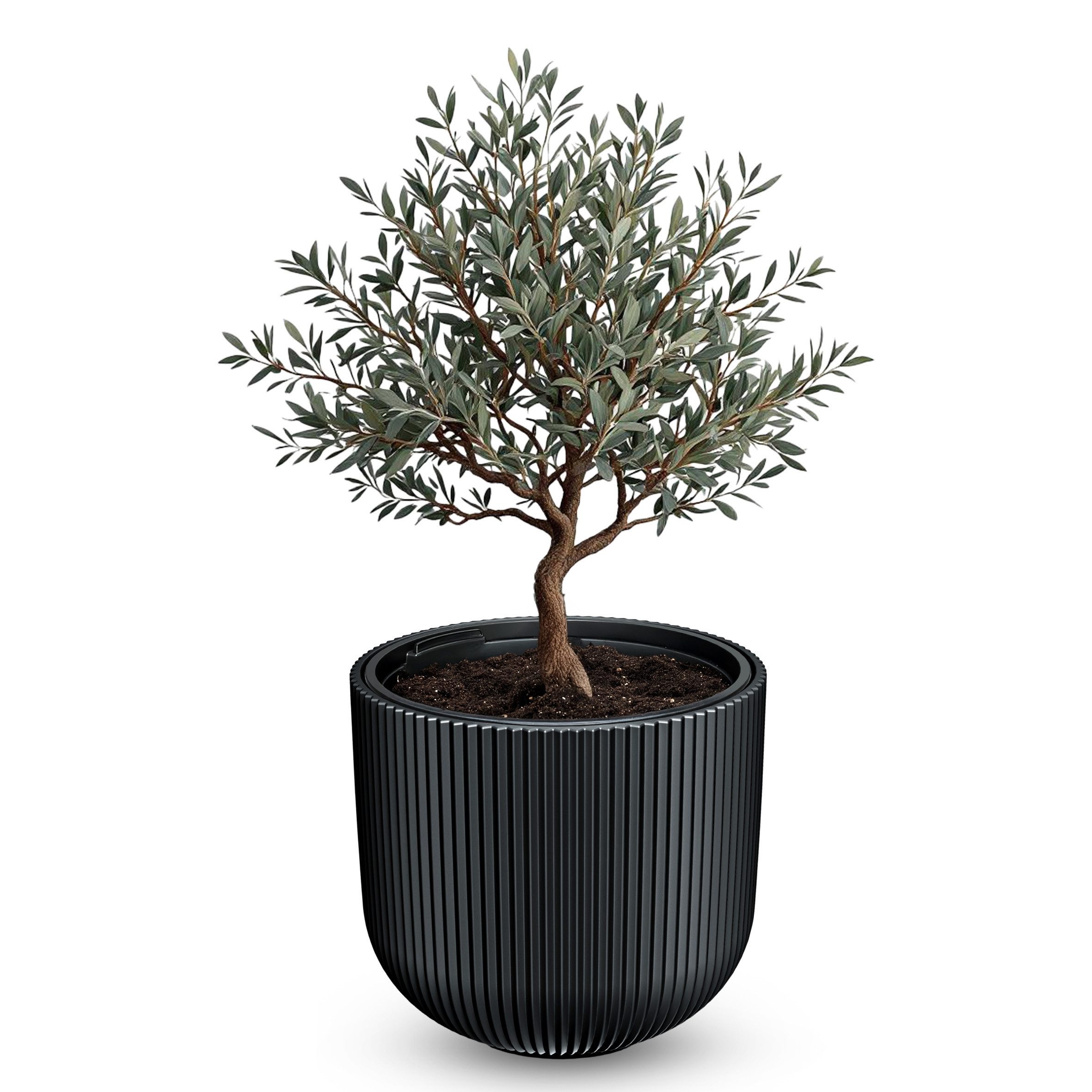 XL Kunststoff Blumentopf rund mit Rillen - 39 x 32 cm - Design Blumenkübel in anthrazit mit Pflanz-Einsatz