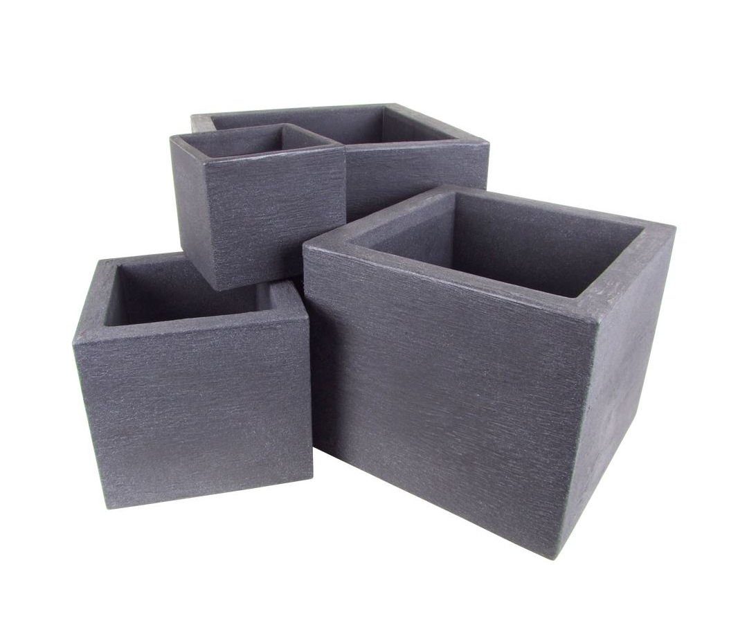 Kunststoff Kubus Pflanzkübel anthrazit - 4er Set - schwarze Pflanztöpfe in 4 Größen