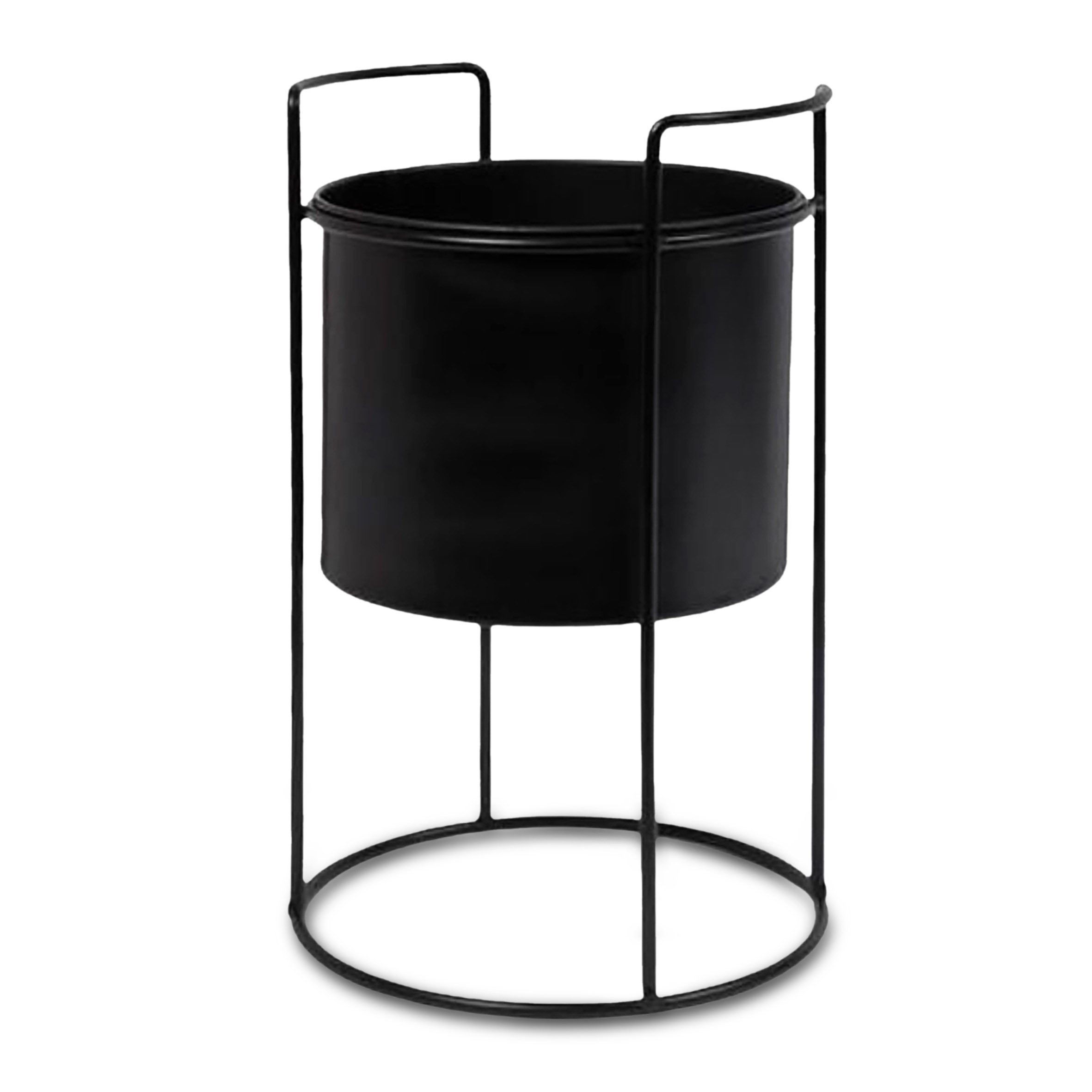 Metall Blumentopf schwarz mit Gestell - 26 x 16 cm - Pflanzen Ständer rund mit Übertopf