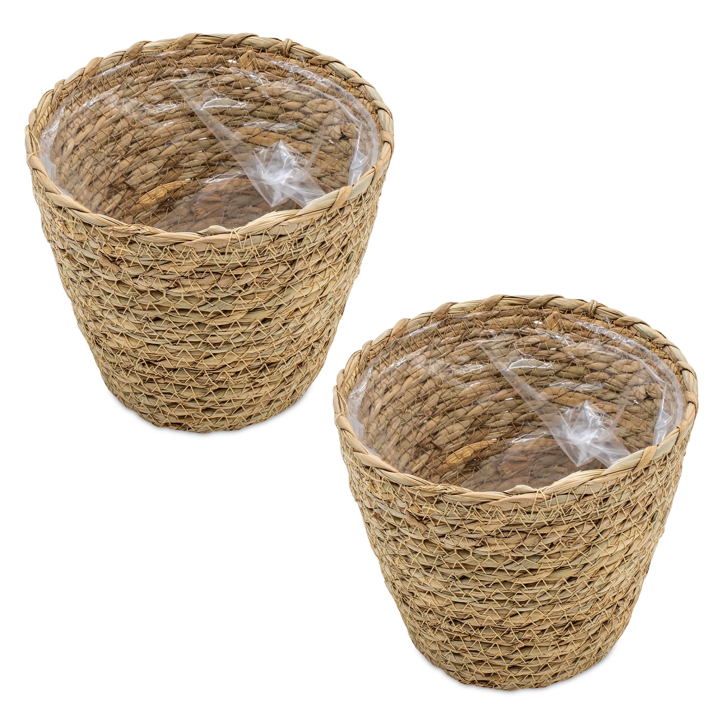 2er Set Pflanzkorb aus natürlichem Seegras jeweils ca. 19 x 16 cm mit eingearbeiteter Folie