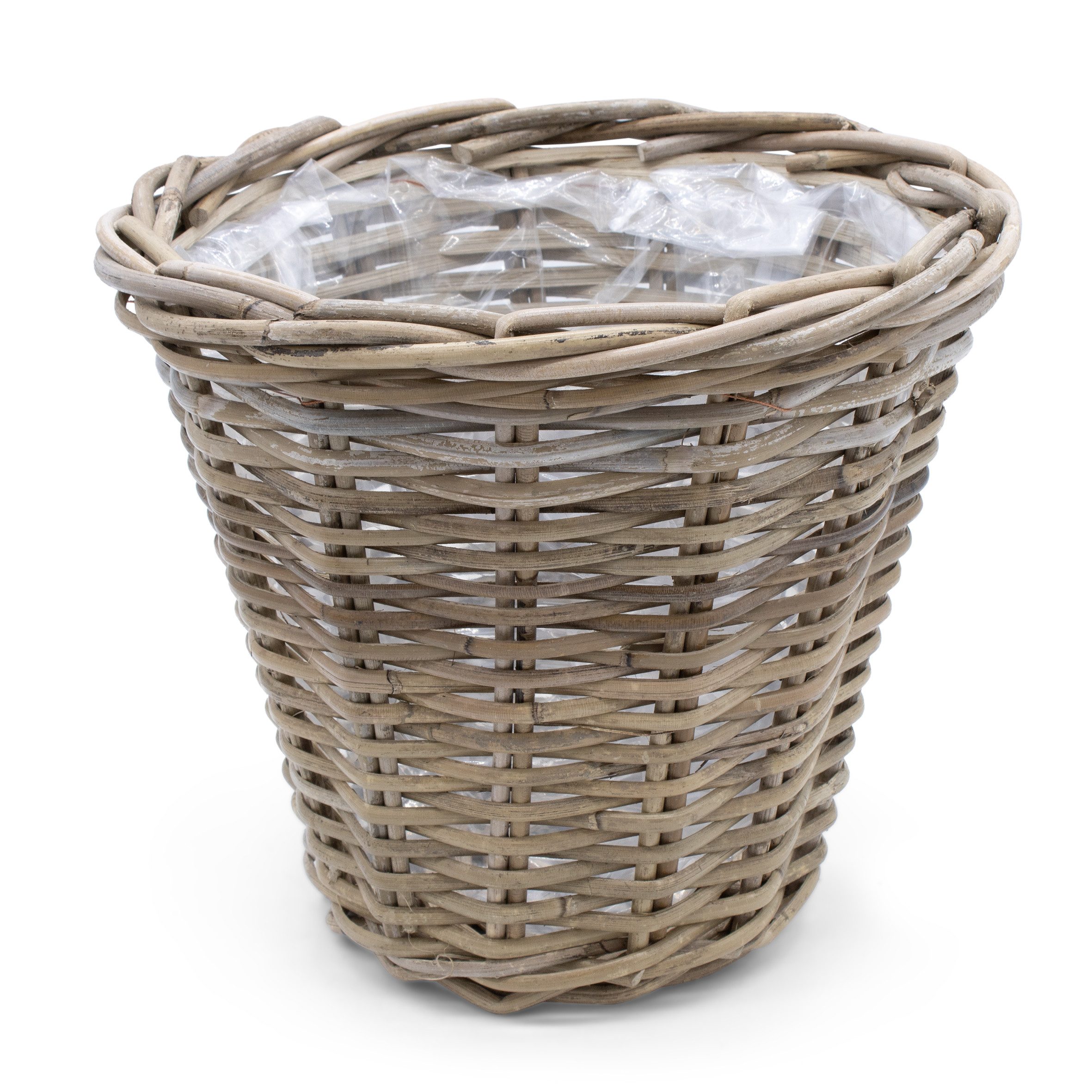 Weide Pflanzkorb natur - 30 cm / rund - Rattan Blumenkorb mit Folie