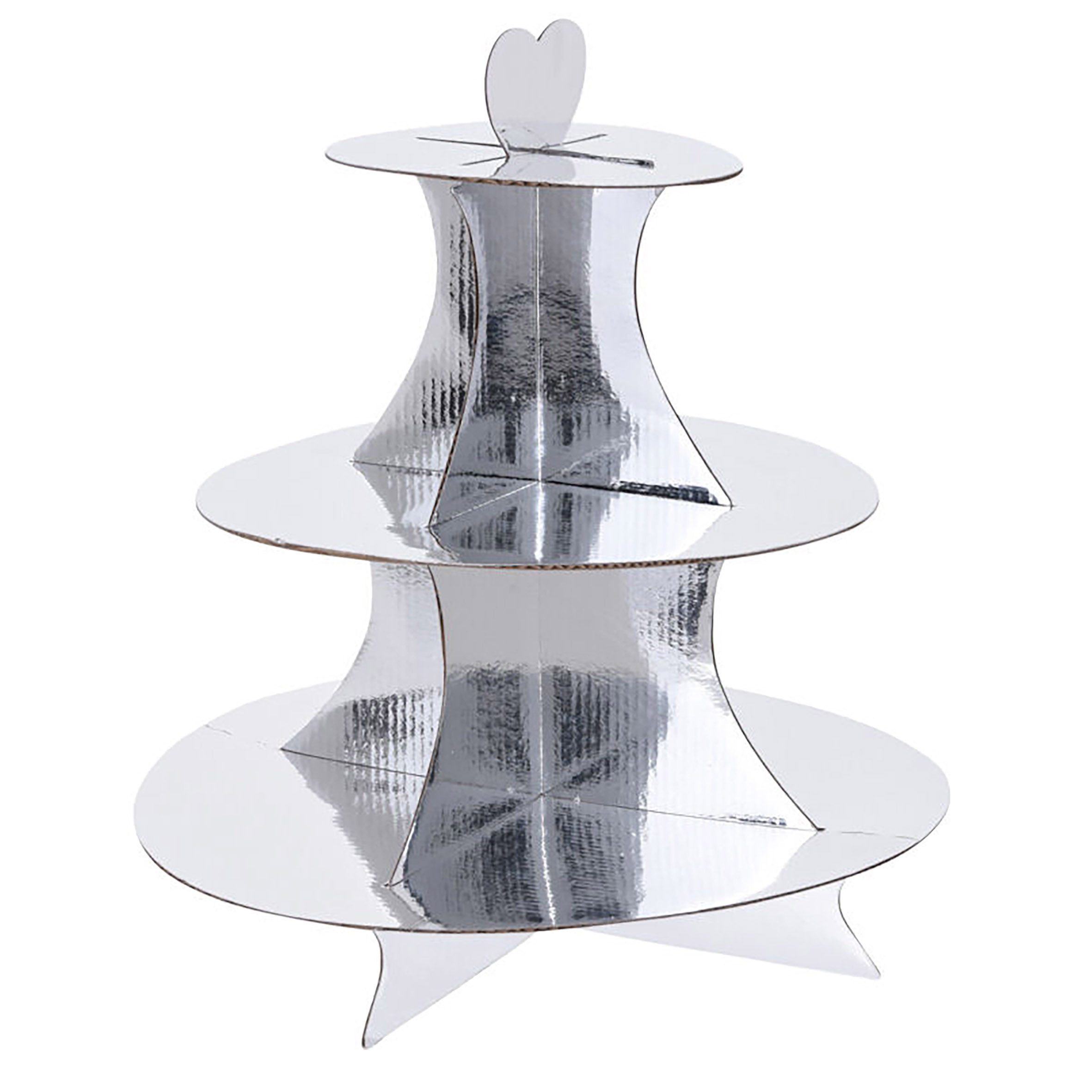 Karton Etagere 34 x 30 cm mit 3 Ablagen - gold - Servier Pappständer mit Herz Tragegriff