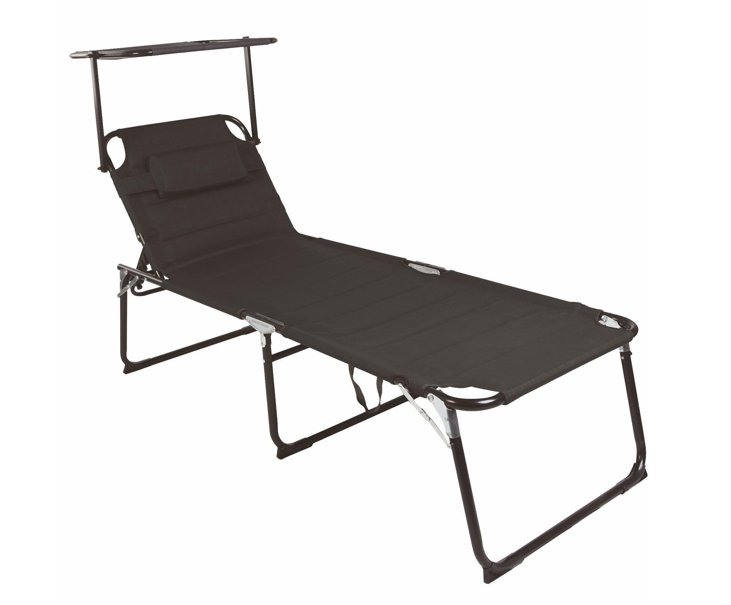 XXL Aluminium Gartenliege mit Sonnendach - schwarz - Relax Sonnenliege inklusive Kopfkissen