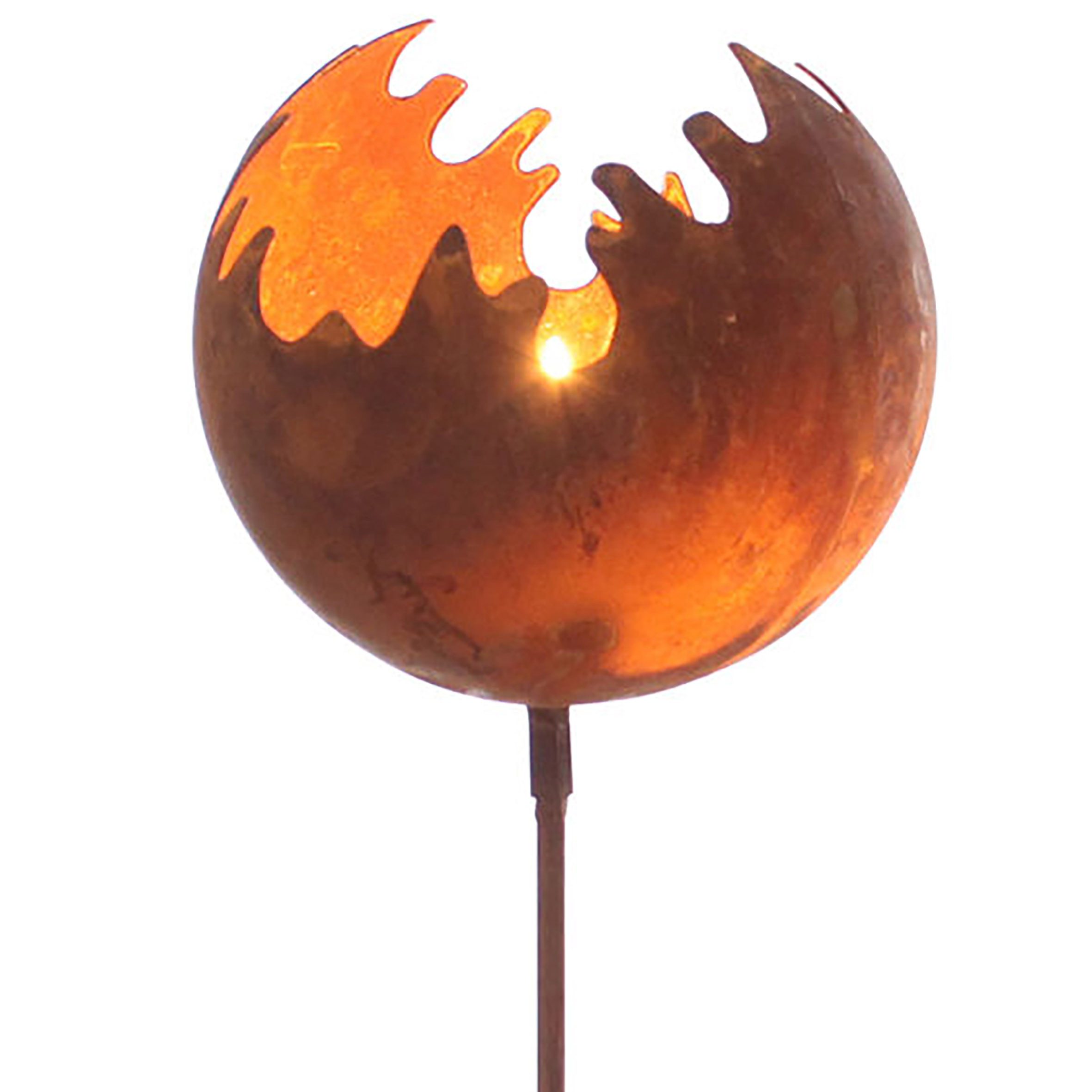 Deko Feuerkugel Garten Stecker aus Metall mit Naturrost ca. H 77 x Ø 11 cm