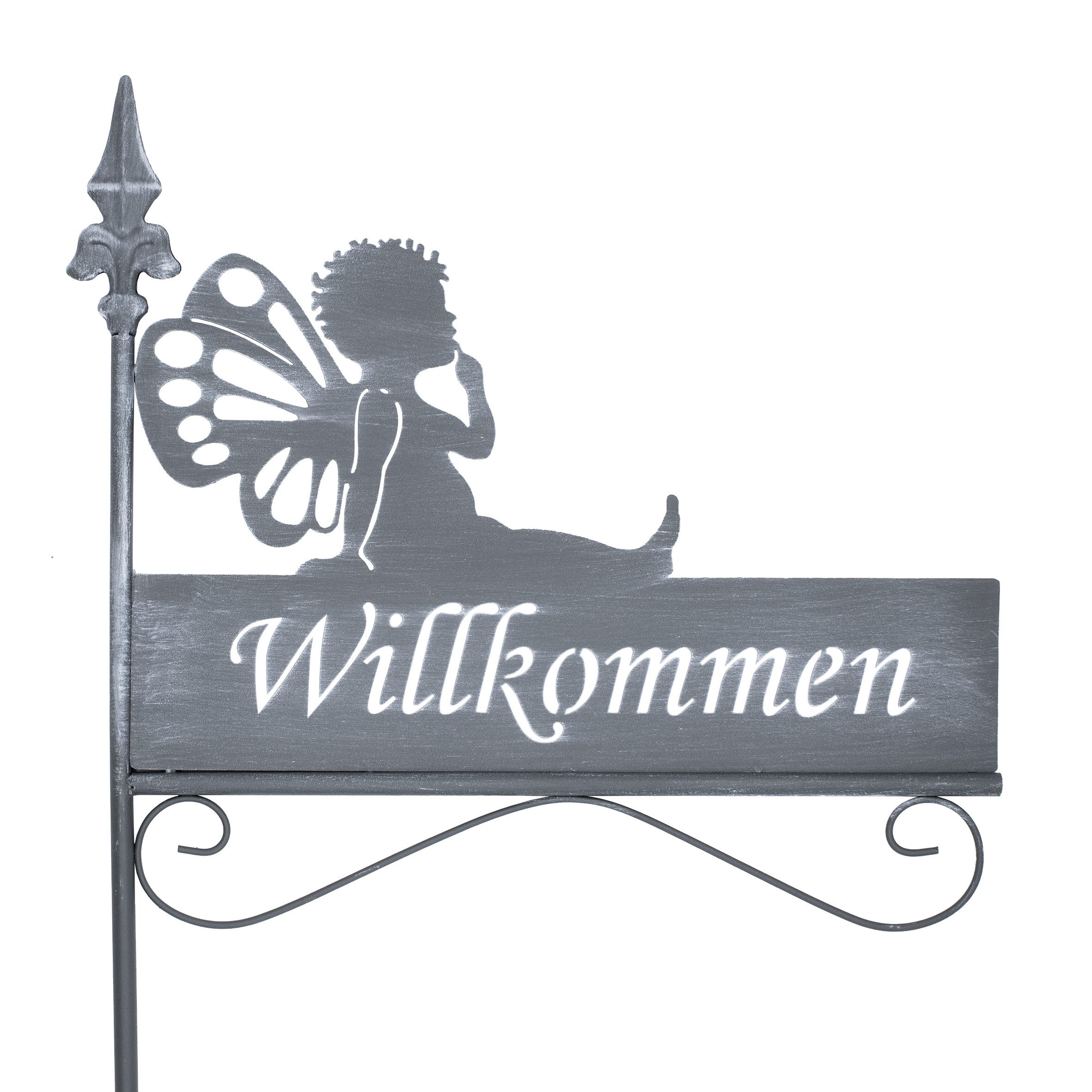 Metall Gartenschild in grau ca. 128 x 42 cm mit Schriftzug WILLKOMMEN