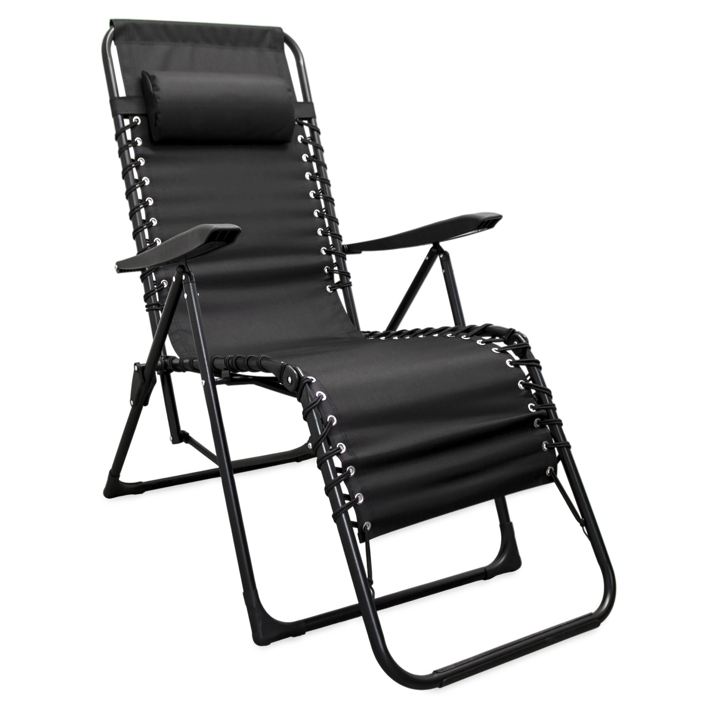 Relax Sessel mit Kopfkissen schwarz - 175 x 101 cm - Verstellbarer Garten Liegestuhl