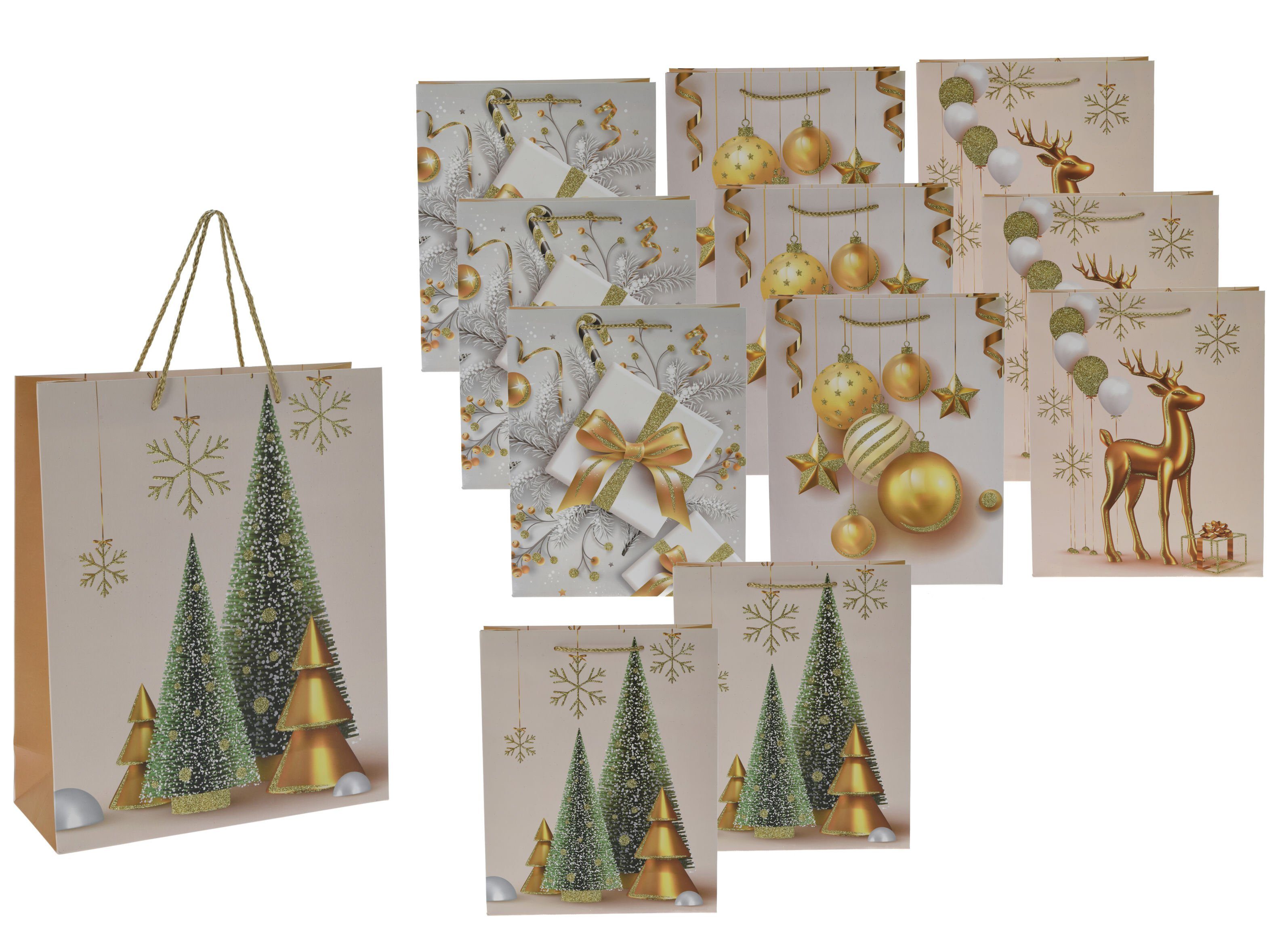 Stabile Weihnachts Geschenktüte aus festem Papier mit Tragekordel im 12er Set mit 4 Motiven