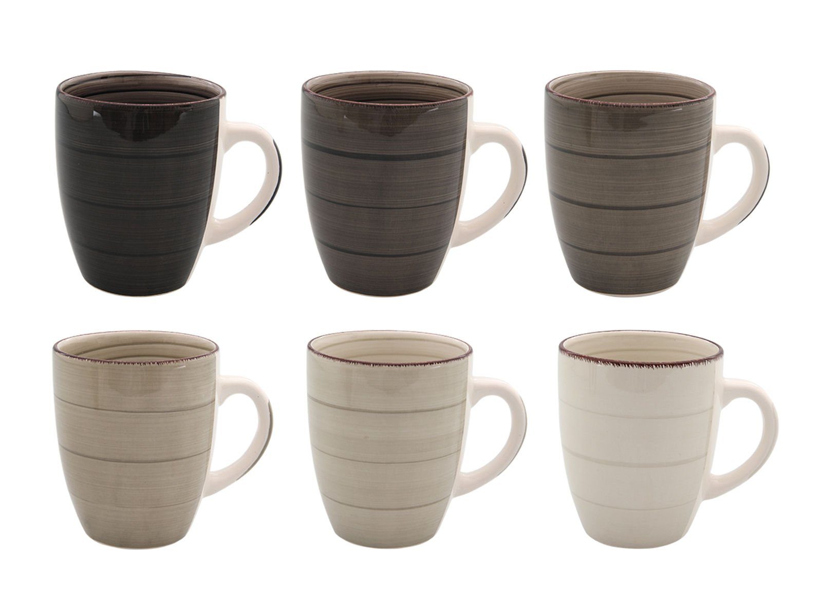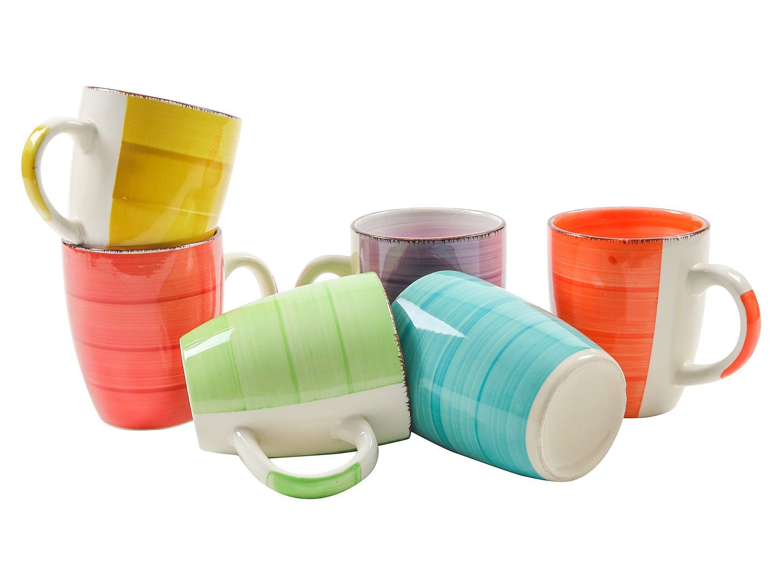 Porzellan Kaffeebecher 6er Set - bunt - Kaffee und Tee Tassen für ca. 340 ml