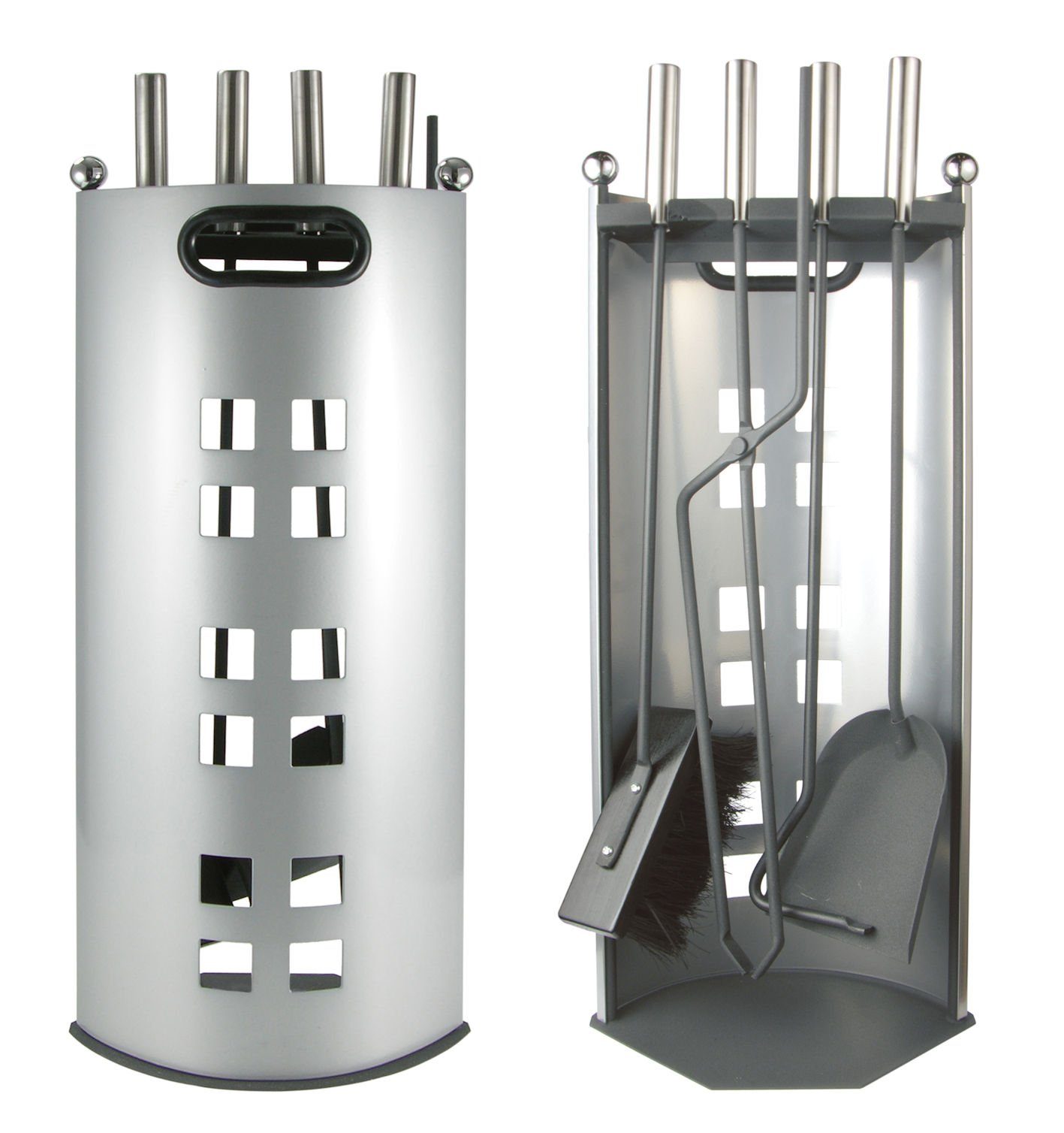 Edelstahl Kaminbesteck - 5-teilig - Kamin Renigungs Set inklusive Ständer