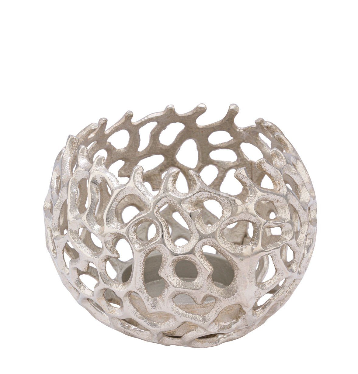Aluminium Design Kerzenschale silber - 15 x 11 cm / mittel - Edler Kerzenhalter mit Gitterdesign