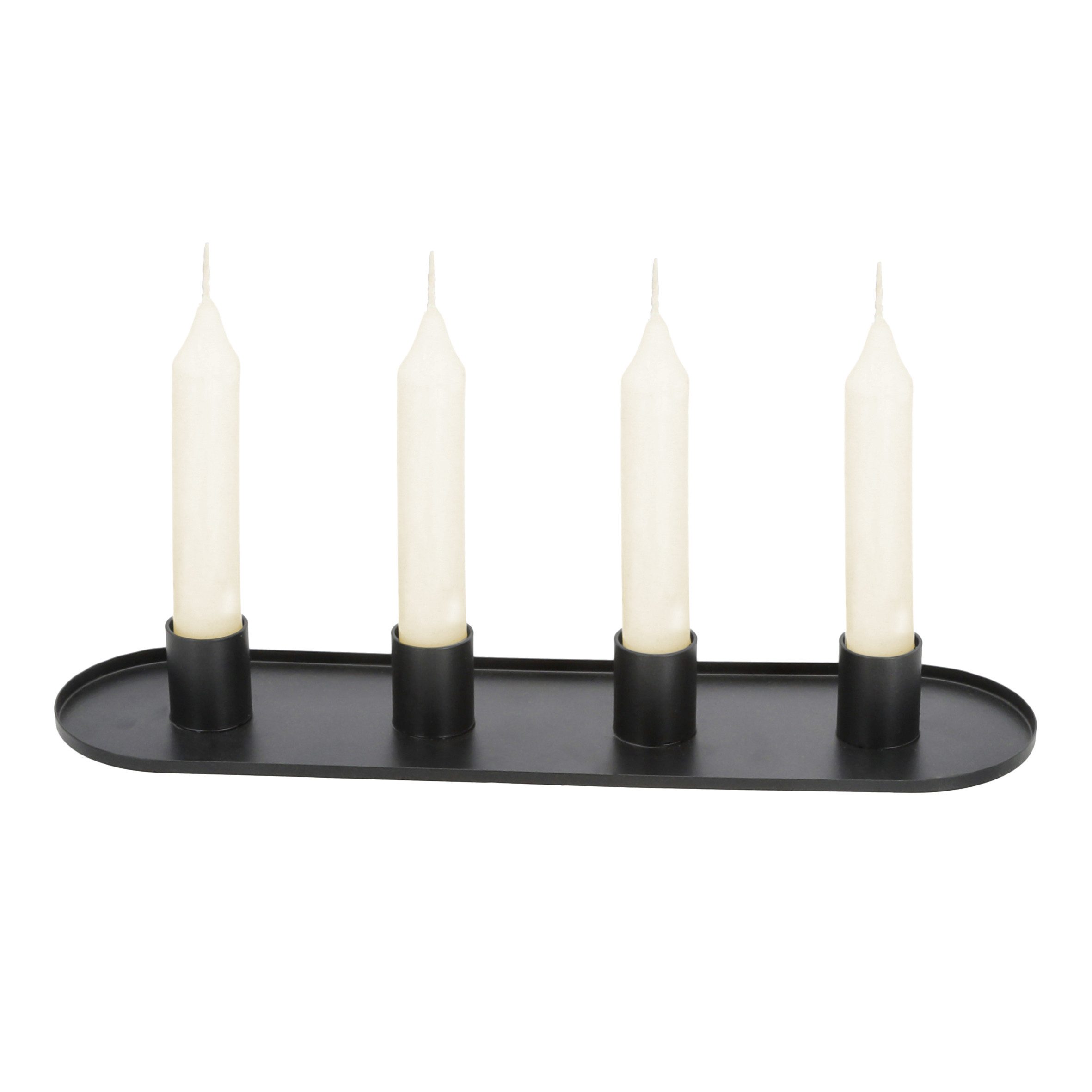 Metall Kerzentablett schwarz für Stabkerzen - 30 x 8 cm - Kerzenhalter oval mit 4 Haltern für Tafelkerzen