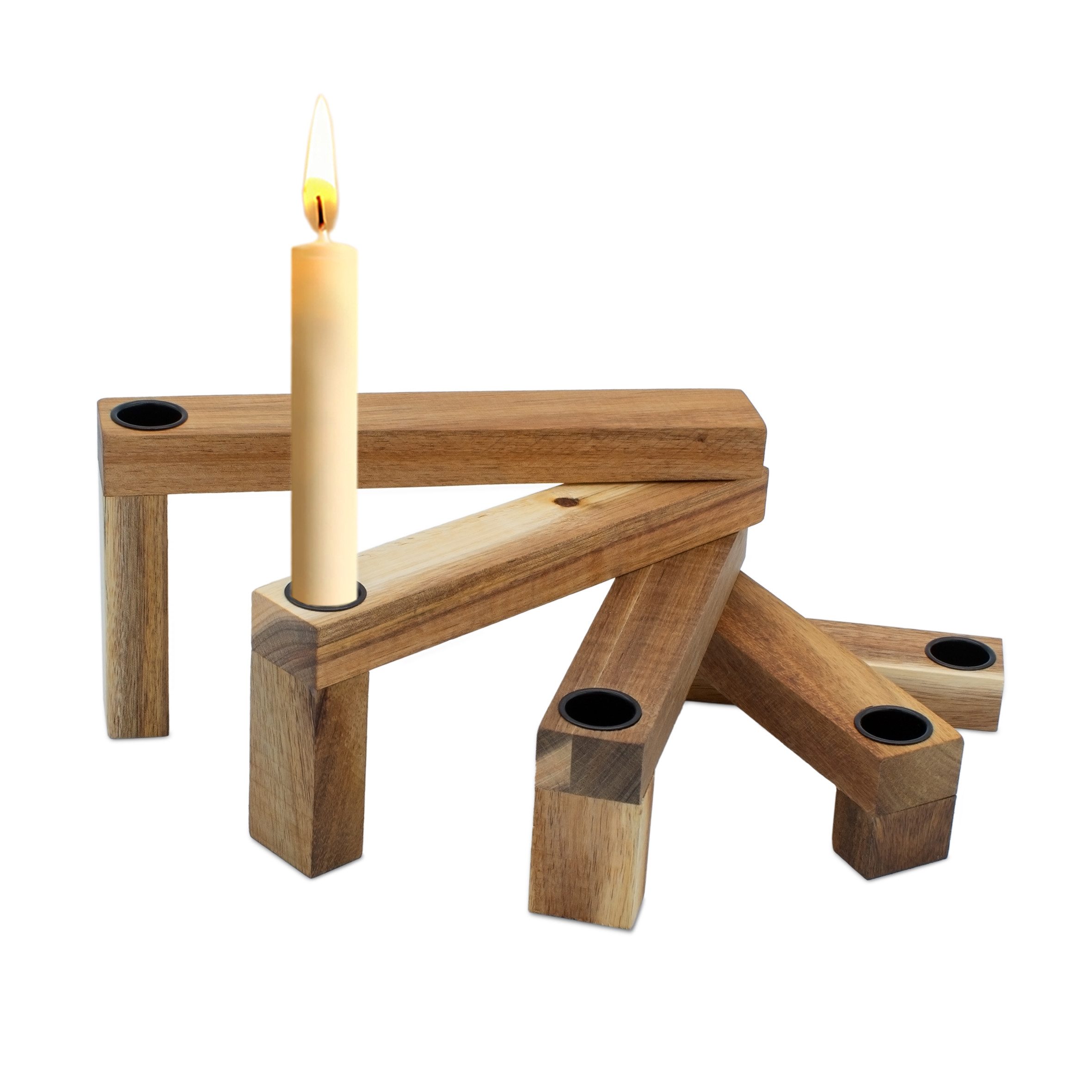 Moderner Holz Kerzenständer für Stabkerzen ca. 25,5 cm x 18 cm auf 5 Halter aufklappbar