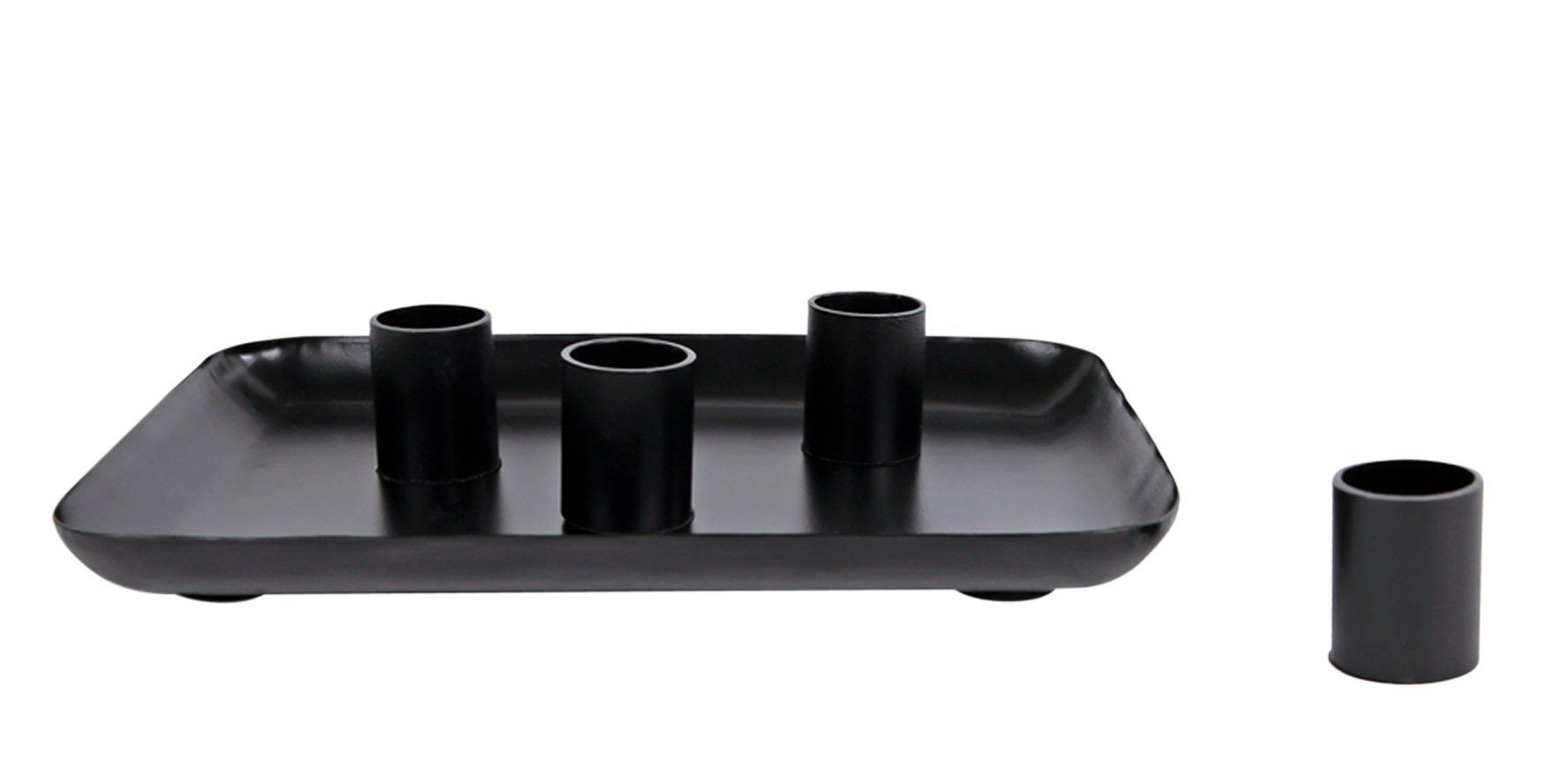 Deko Tablett ca. 20 x 15 cm aus Metall in schwarz mit 4 Magnet Kerzenhaltern für Stabkerzen