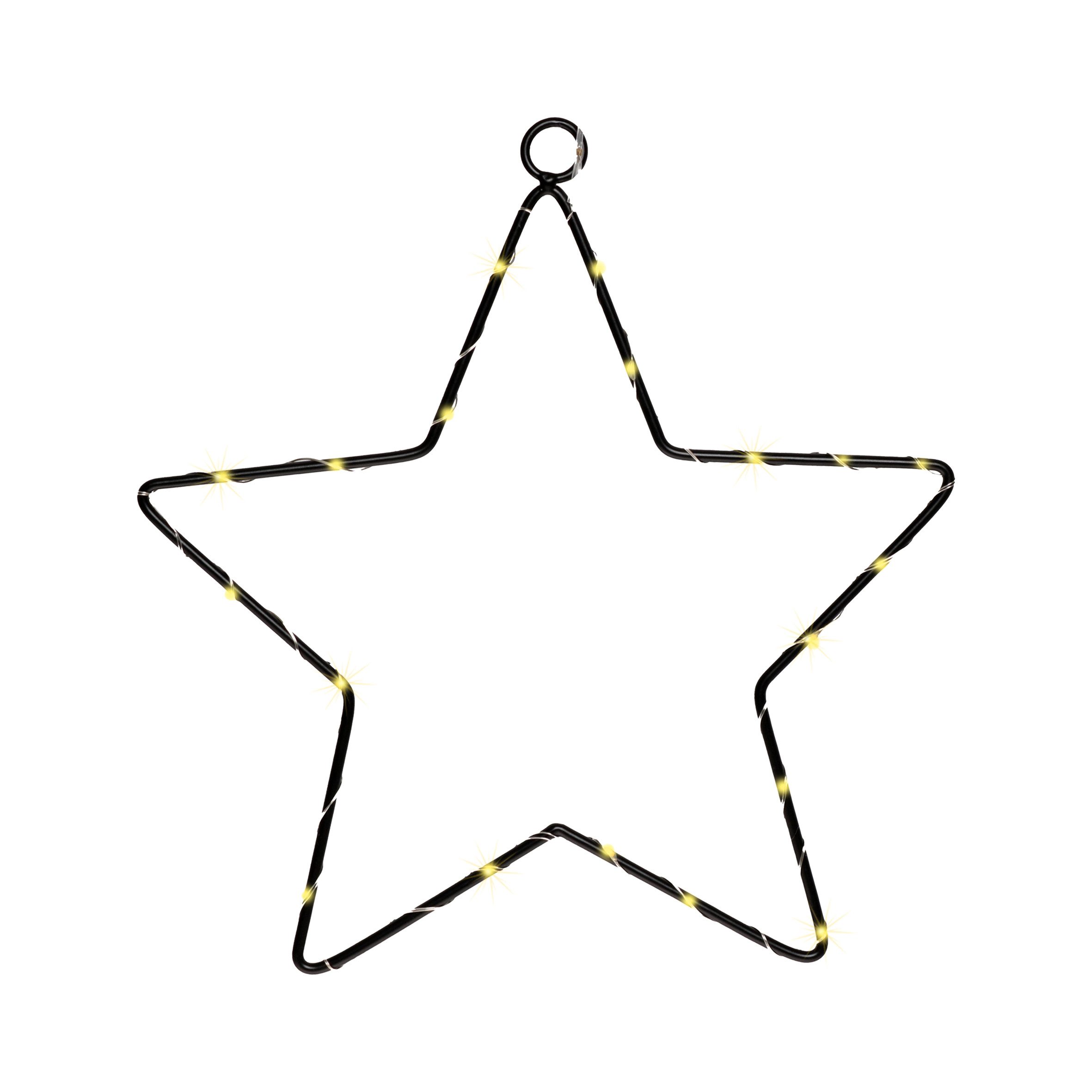Schmückender LED Leuchtstern in schwarz zum Hängen mit 20 warmweißen LED