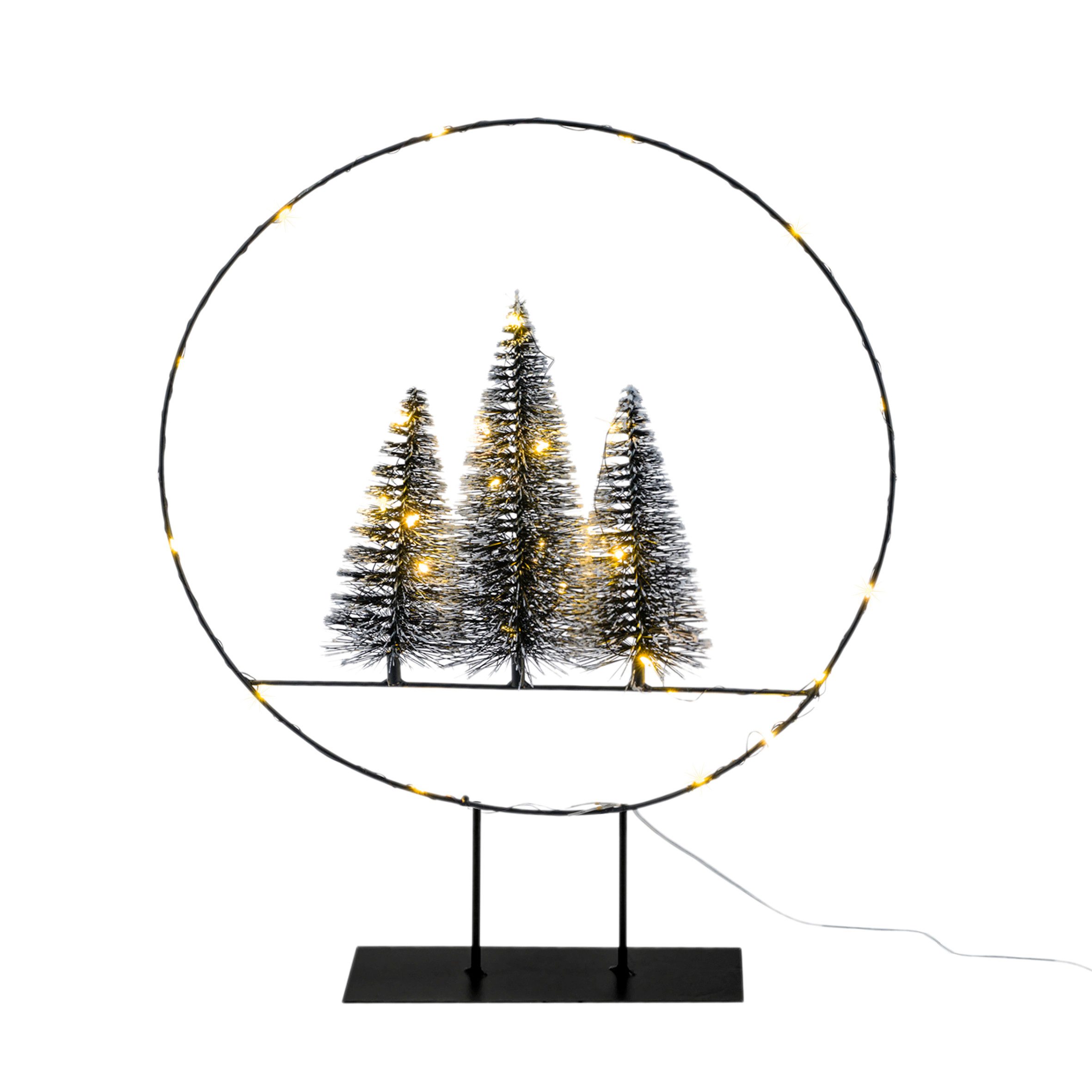 Deko Ring aus Metall in schwarz ca. 35 cm Durchmesser mit Weihnachtstanne und Schnee - beleuchtet mit 30 LED