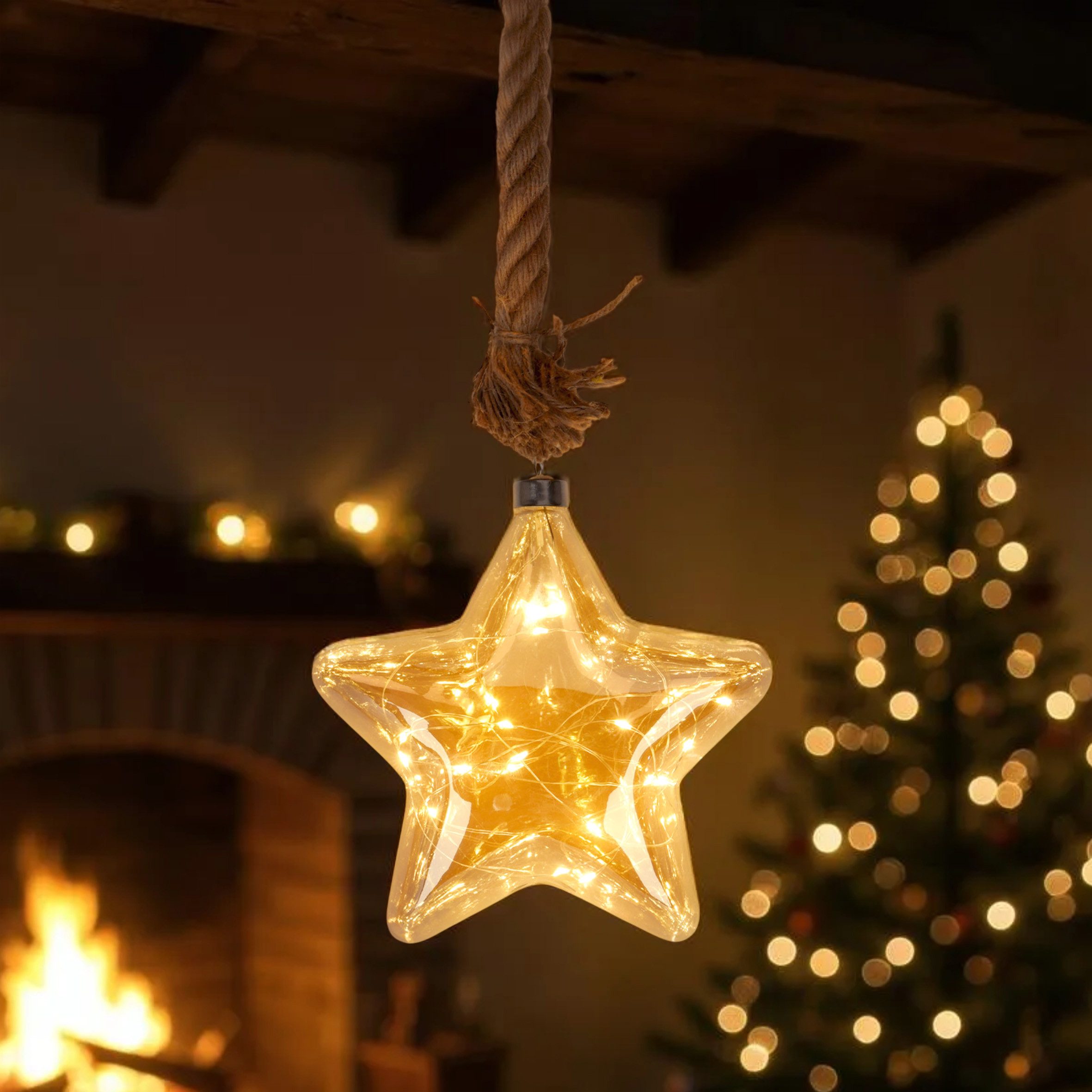 Glasstern mit dickem Tau zum Aufhängen