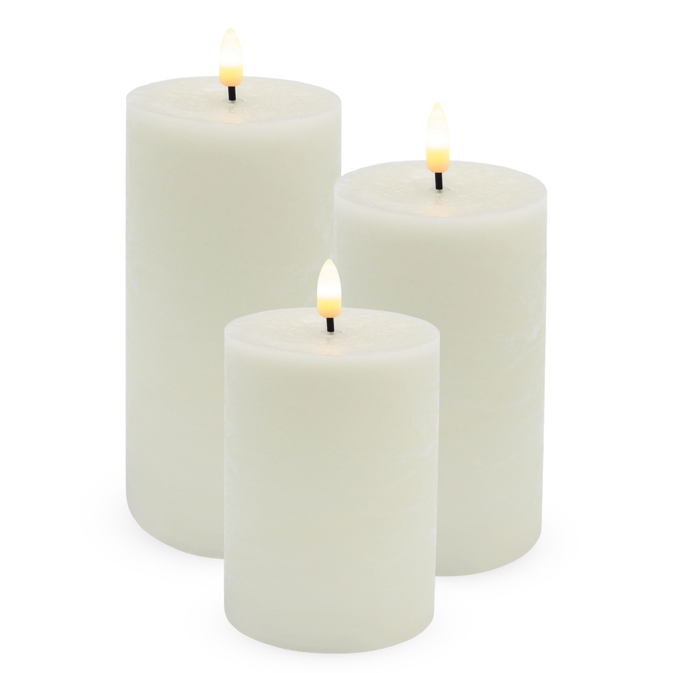 3er Set elektrische Kerzen Batterie betrieben mit Timer je 1x 10 / 12 / 15 cm mit sanft flackernden LED in warm weiß